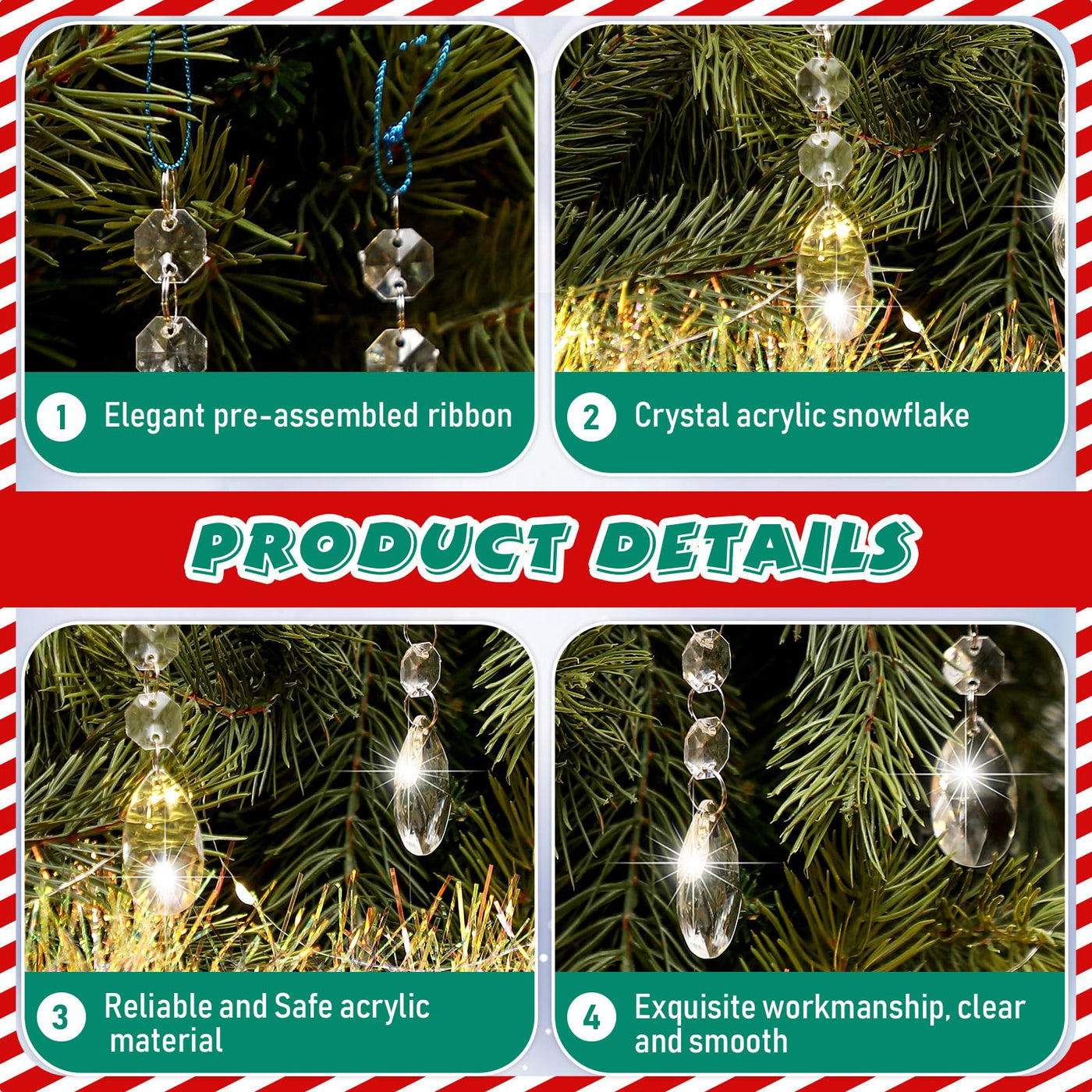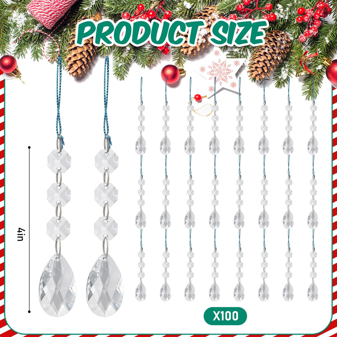 Syhood 100 Pcs Crystal Christmas Ornaments Hanging Christmas Tree Decorations Clear Acrylic Teardrop Bead Pendants for Xmas Home
