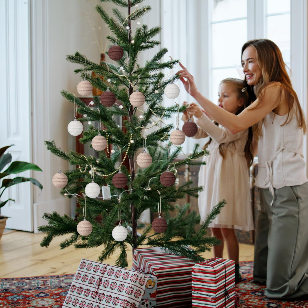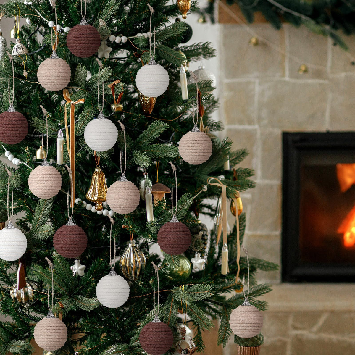 Syhood 18 Pcs 1.57 Inch Mini Christmas Ball Ornaments Boho Farmhouse Jute Rope Hanging Balls Burlap Neutral Rustic Ornaments for