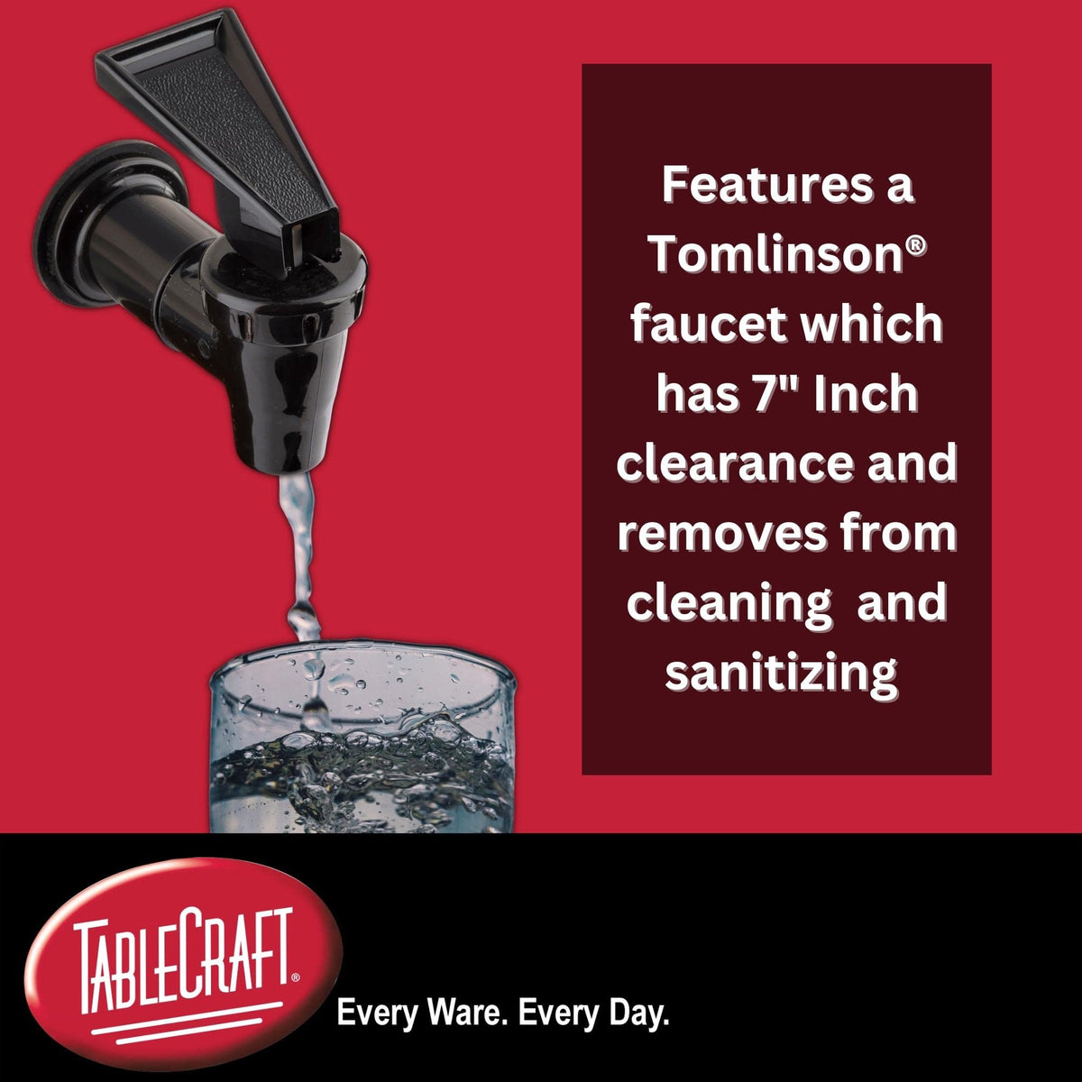• Q: Does the beverage dispenser have a faucet? A: Yes, it features a standard Tomlinson faucet for easy dispensing of beverages.