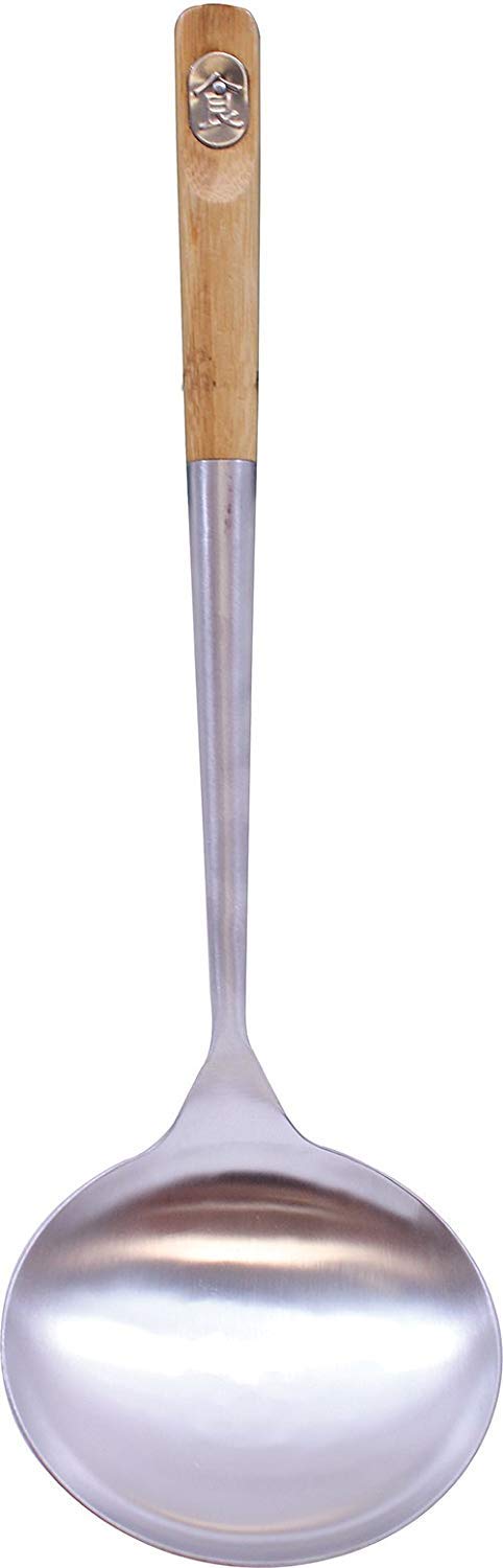 - Q: What is the benefit of the bamboo handle on the wok spoon and skimmer? A: The bamboo handle provides comfort and keeps your hands away from heat during cooking.