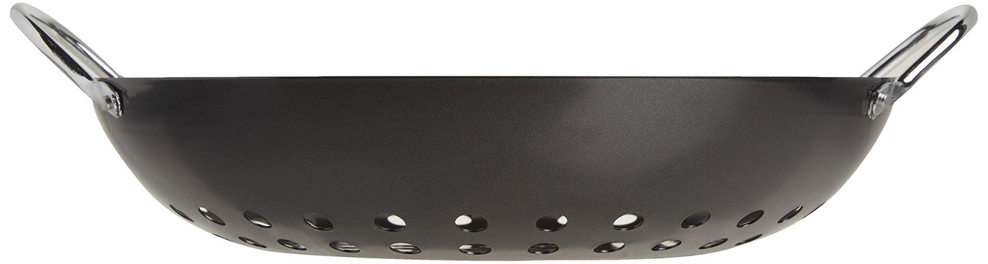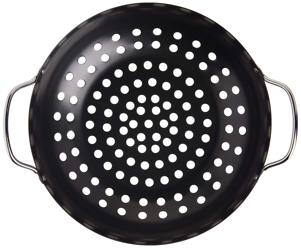 Tablecraft Bbq Metal Handle 13-Inch Non Stick Coating Round Grilling Wok, Small, Black