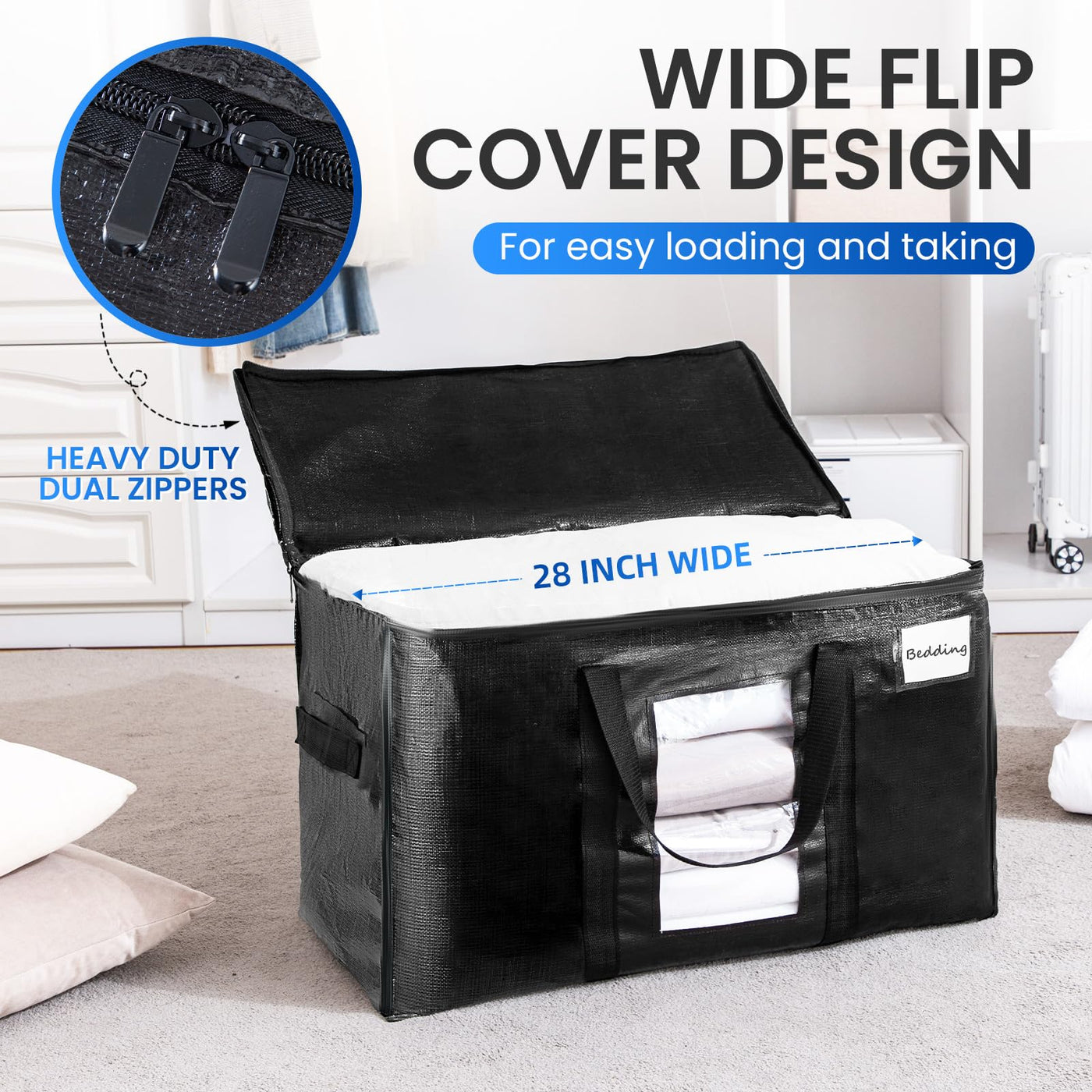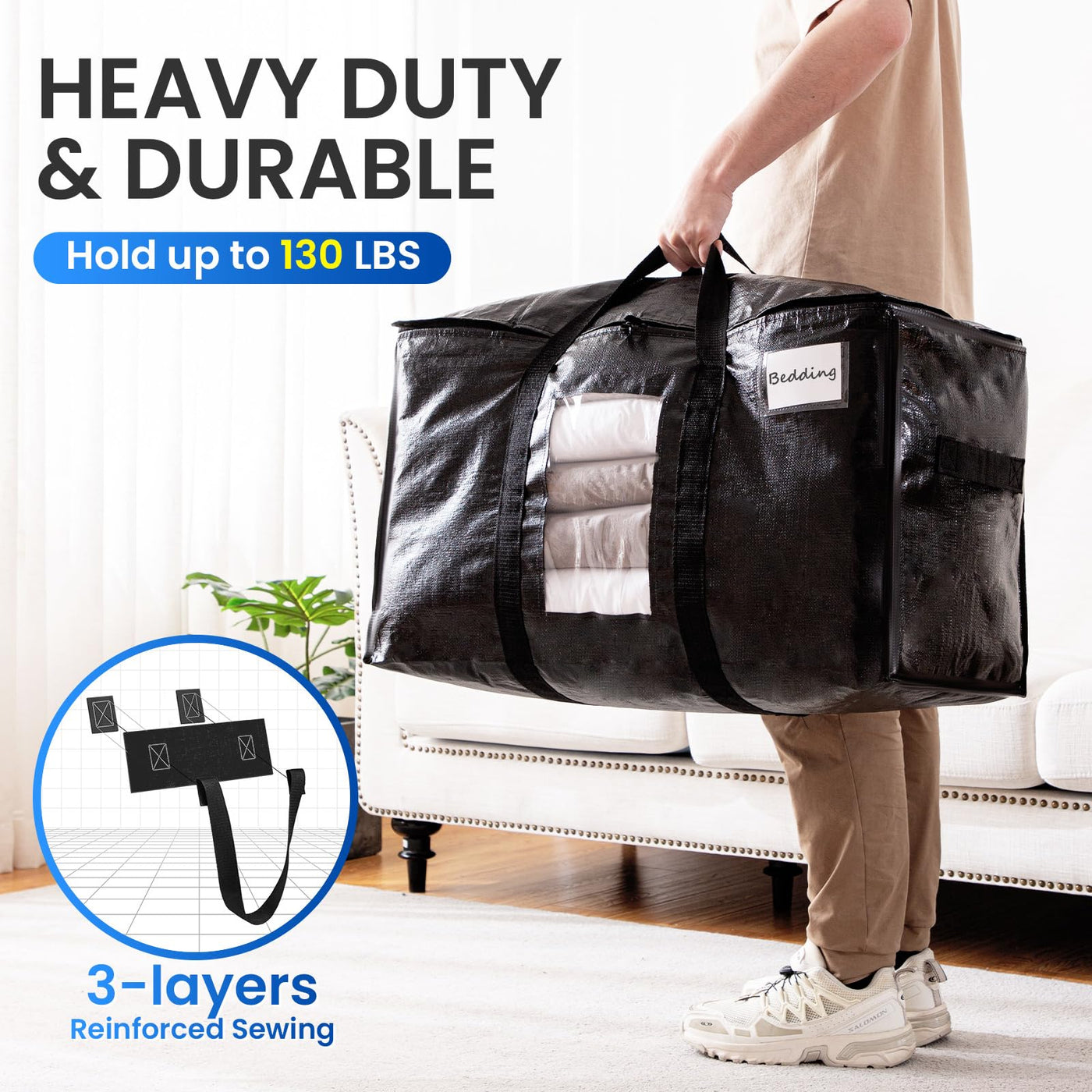 TAILI Moving Bags Silver Heavy Duty Extra Large 4 Pack Storage Bags with zips,Clear Window & Reinforced Handles, Waterproof stor