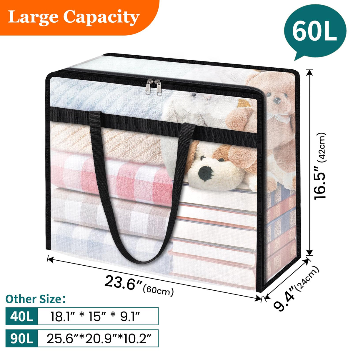 TasticTotes 8 Pack Clear Storage Bags for Comforter, Clothes & Bedding, Plastic Blanket Storage with Zipper and Handle, Moving Bags, Closet Organizer and Under-Bed Storage (60L)