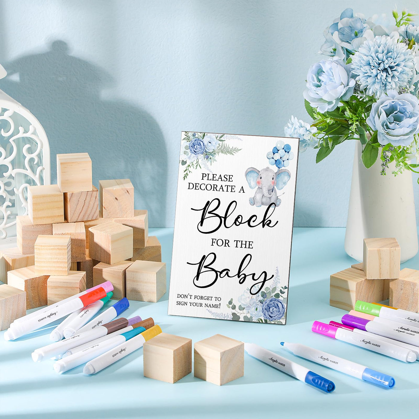 Tatuo 75 Pcs Baby Shower Games Sign Kit Including Decorate A Block Game Sign 50 Diy Blank Wooden Block 24 Acrylic Paint Marker B