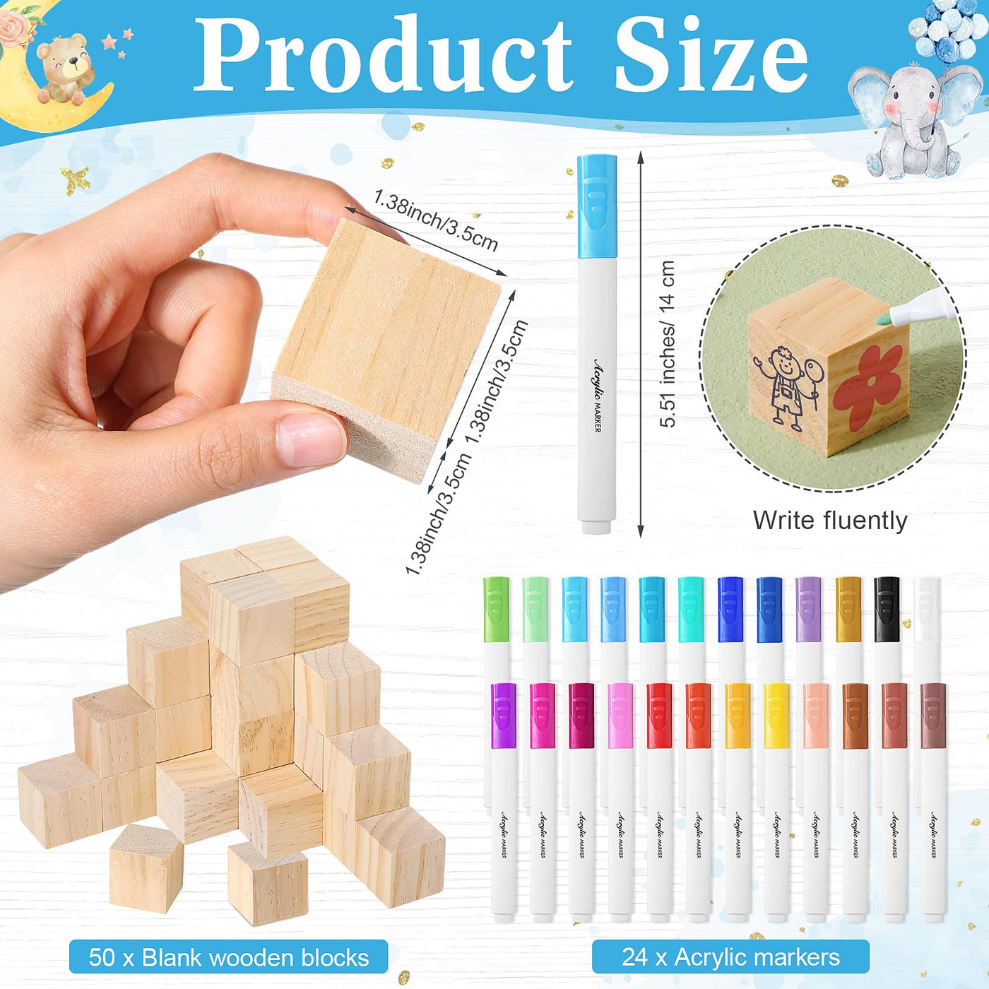 - Q: How can I customize the wooden blocks? A: You can paint and decorate the wooden blocks using the provided acrylic paint pens to create personalized designs.
