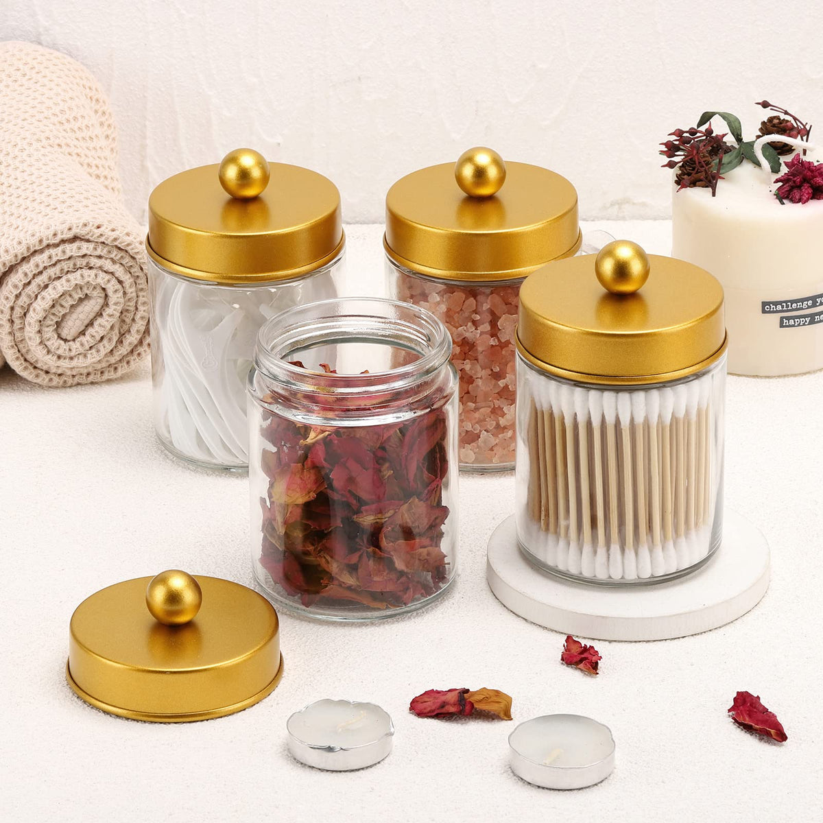 • Q: Can these jars be used for purposes other than bathroom storage? A: Yes, these versatile jars can also be used in the kitchen or for organizing various small items around the home.