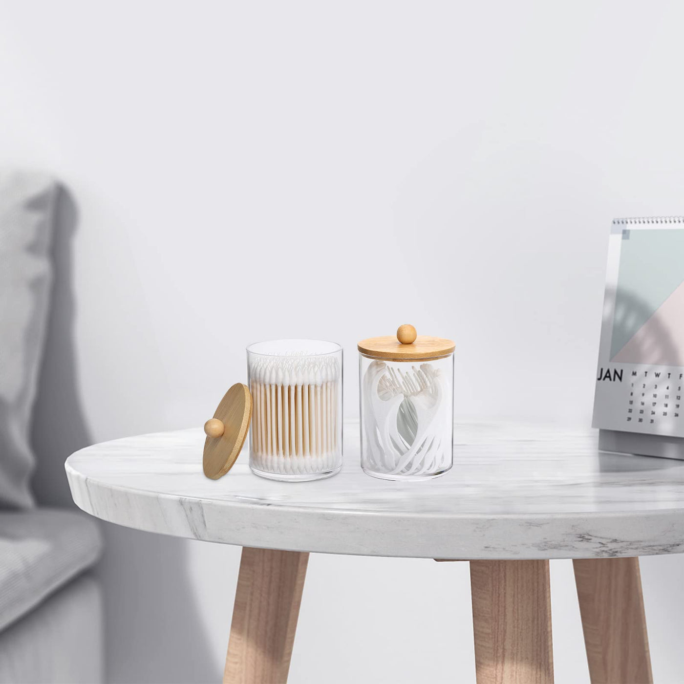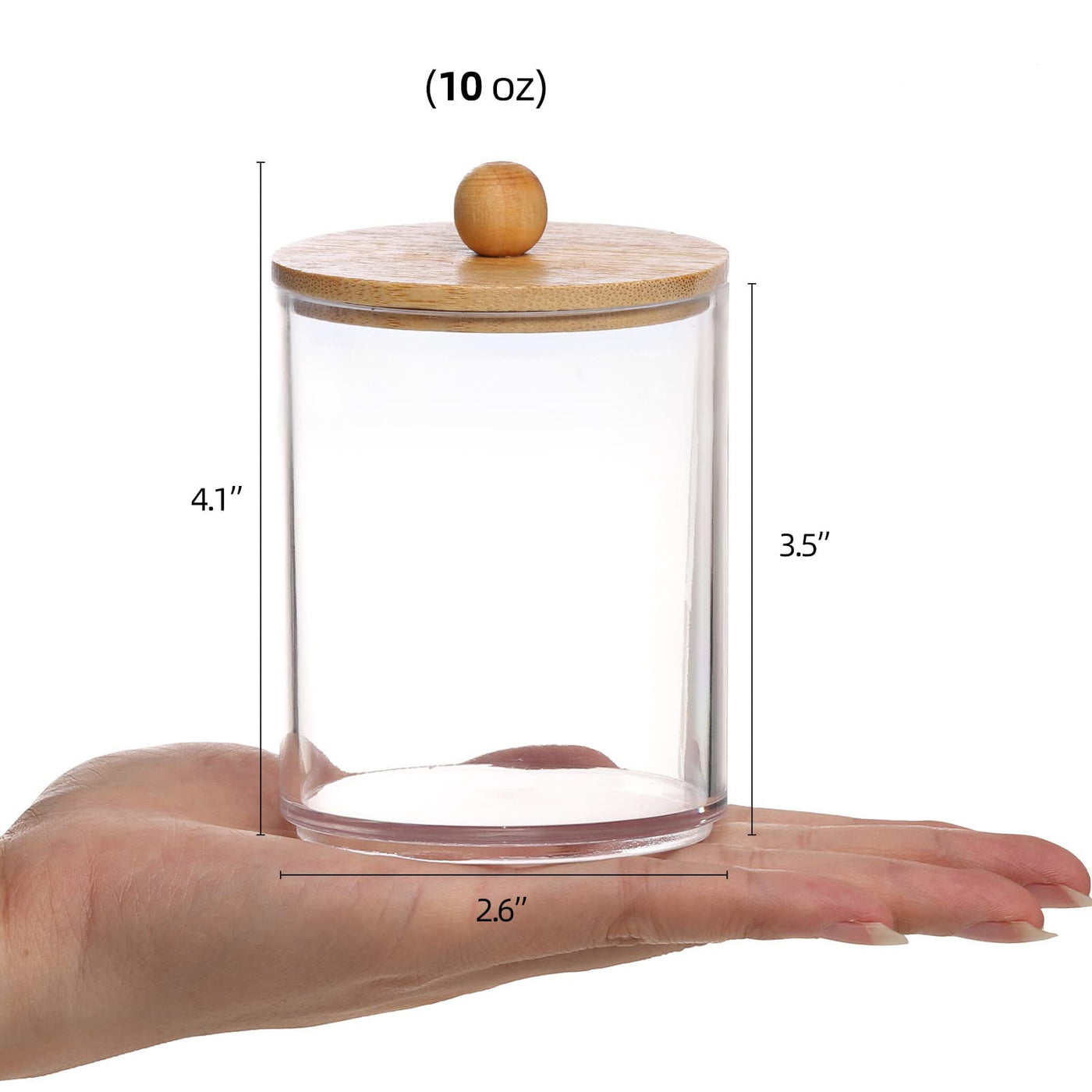 Tbestmax 6 Pack Qtip Holder, 10-Ounce Apothecary Jars With Bamboo Lids For Cotton Ball Swab Pad Dispenser, Bathroom Canisters Or