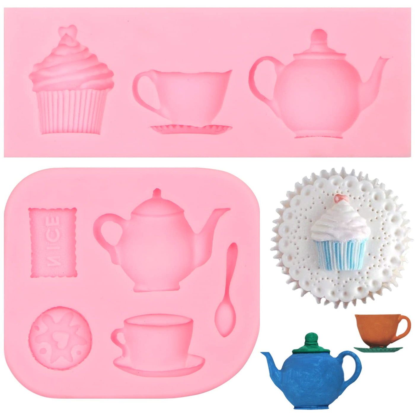 Tea Party Silicone Molds 2 Pcs, Afternoon Tea Chocolate Fondant Mold For Cake Decoration, Candy Sugar, Cupcake Topper, Cake Pop,