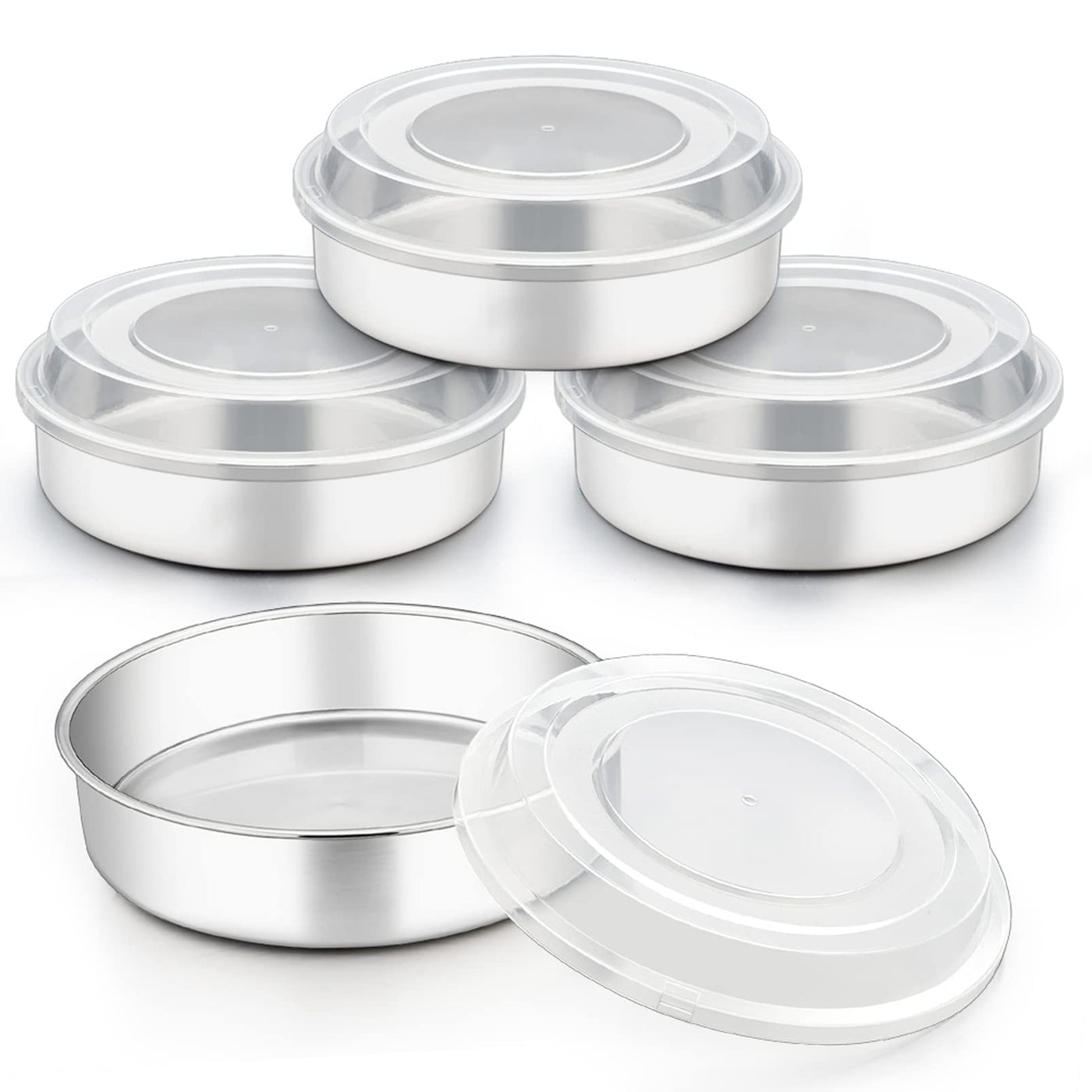 Teamfar 8 Inch Cake Pan With Lid (4 Pans + 4 Lids), Stainless Steel Round Tiers Cake Baking Pans With Lids, Non-Toxic & Sturdy,