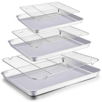 - Q: Can I use these baking sheets in a conventional oven? A: Yes, the stainless steel construction allows for safe use in conventional ovens for baking and roasting.