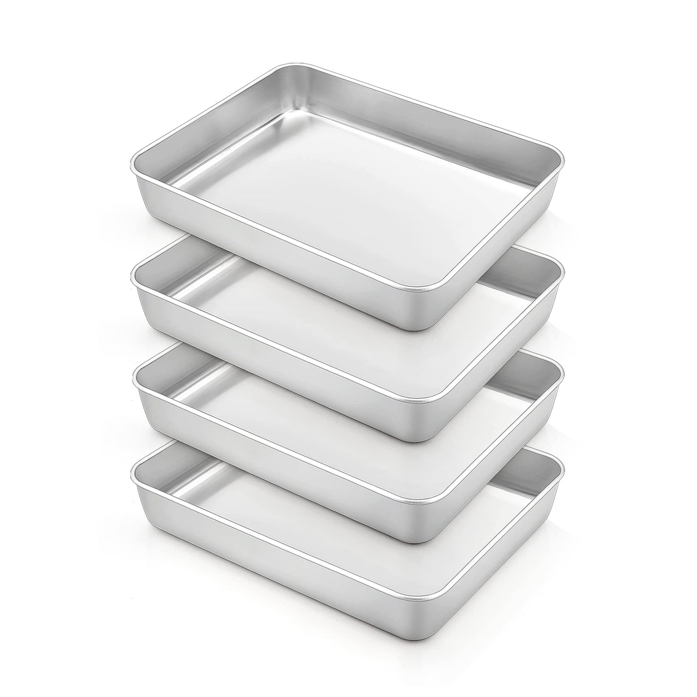 Teamfar Rectangular Cake Pan, 9.3 X 7 X 2, Mini Deep Lasagna Cake Brownie Pan Stainless Steel For Baking Roasting, Deep Wall & H