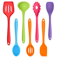 - Q: What utensils are included in the 7-piece set? A: The set includes a slotted turner, soup ladle, pasta server, spatula spoon, solid spoon, slotted spoon, and a large spatula.