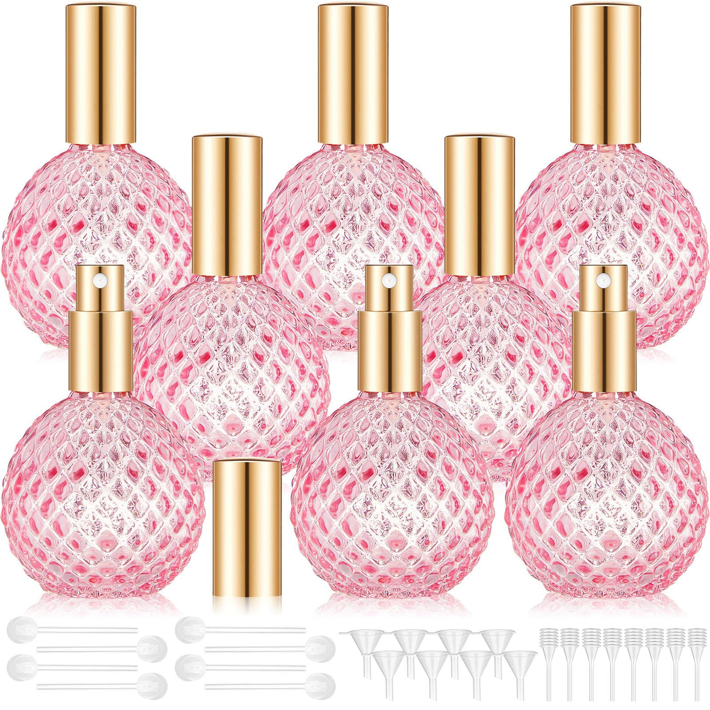 Features: The Artistry Of Retro Perfume Bottles: Made From Quality Material, Our Retro Perfume Bottles Offer Longevity With A Classically Rich Appearance. Their Unique Design Prevents Perfume Evaporation And Leakage While Maintaining The Fragrance'S Quality. Timeless Elegance: Our Glass Perfume Spray Bottles Boast A Distinctive Retro Style Aesthetic - A Nod To The Classic Perfume Era Making Them A Beautiful Addition To Your Vanity. The Precision Incorporated Into Their Design Aids In Controlling The Concentration Of Perfume Distribution, Ensuring That No Drop Of Your Precious Perfume Goes To Waste. Specifications: Material: Glass Color: Pink Size: About 4.1X 2.6 Inches (10.5X 6.6Cm) Package Includes: 8 X Glass Perfume Spray Bottles 8 X Funnel 8 X Dropper 8 X Pump Head Notes: Manual Measurement, Please Allow Slight Errors On Size. The Color May Exist A Slight Difference Due To Different Screen Displays.