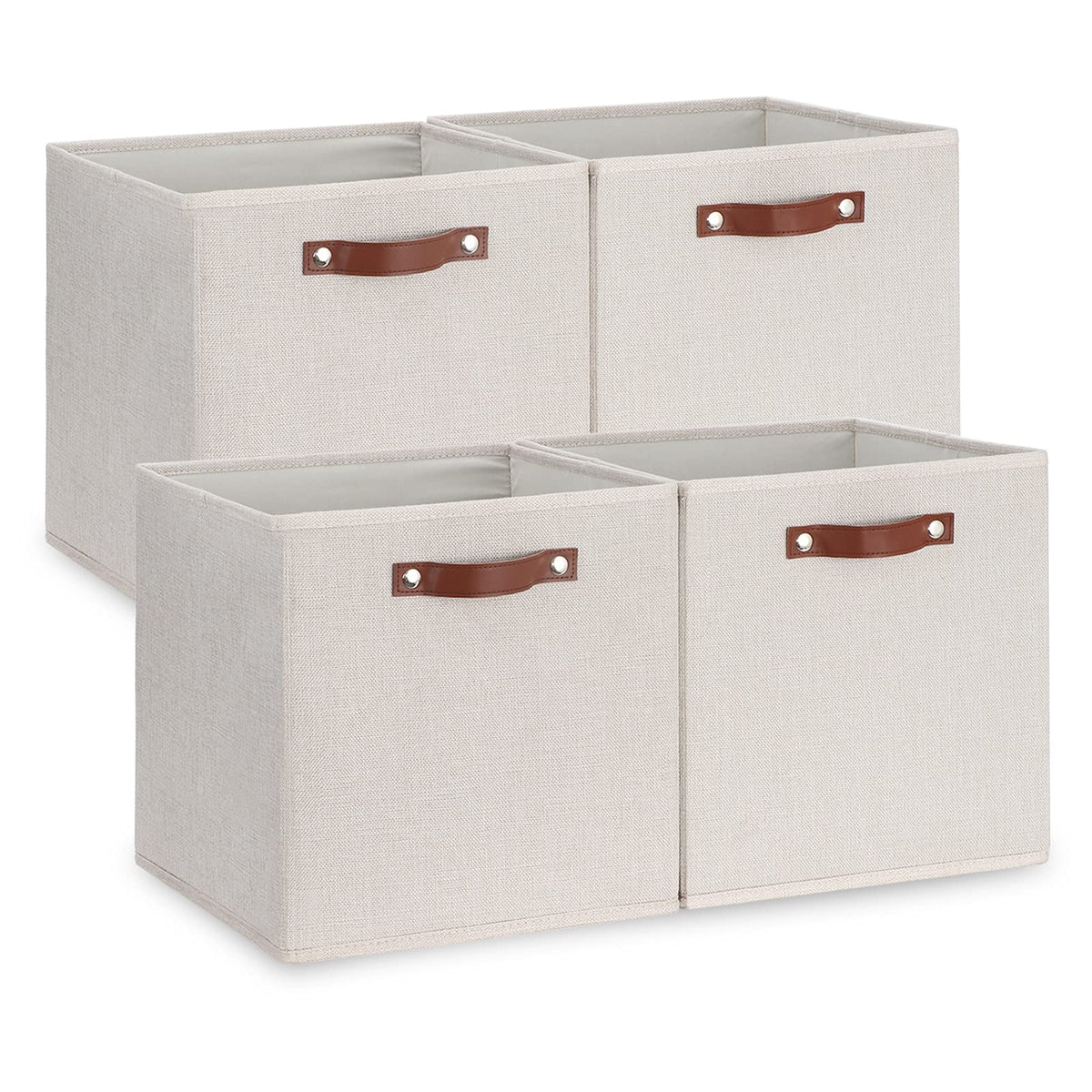 Temary Fabric Storage Cubes Storage Bins with Dual Leather Handles 4 Pack Cube Baskets 13x13 Foldable Cube Organizers for Shelves Home Office Nursery