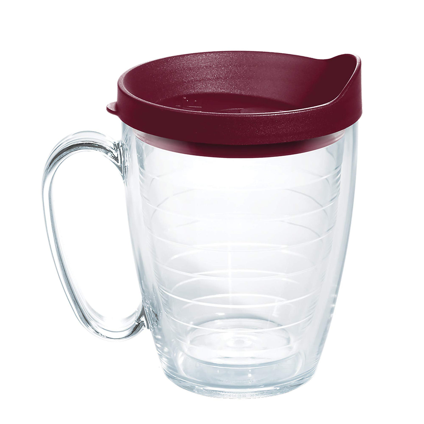 Tervis Clear & Colorful Lidded Made in USA Double Walled Insulated Tumbler Travel Cup Keeps Drinks Cold & Hot, 16oz Mug, Maroon