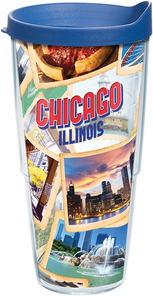 Tervis Made In Usa Double Walled Chicago Collage Insulated Tumbler Cup Keeps Drinks Cold & Hot, 24Oz, Classic