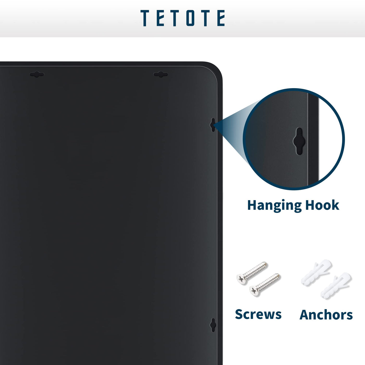 - Q: What are the dimensions of the TETOTE Black Framed Mirror? A: The TETOTE Black Framed Mirror has dimensions of 22 inches by 30 inches.