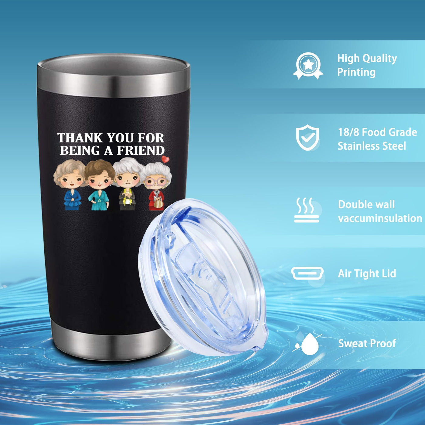 Thank You for Being A Friend Mug Gifts - Cute Friend Gifts Friendship Birthday Gifts for Women Buddies Besties BBF Sister Female-Golden Girls Cute Coffee Tumbler Cups with Lid Straw 20 OZ (Black)