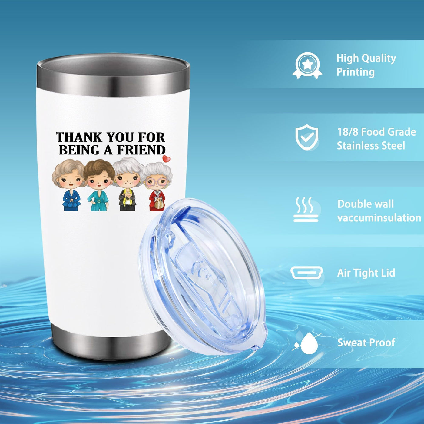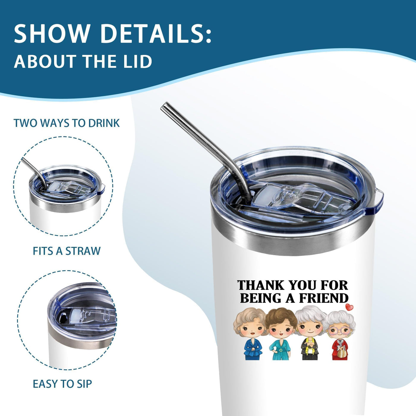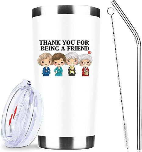 Thank You for Being A Friend Mug - Golden Girls Merchandise Gift for Friends Friendship Birthday Mothers Day Gifts for Women Buddies Besties - Iced Coffee Tumbler Cup with Lid Straw 20 OZ (White)
