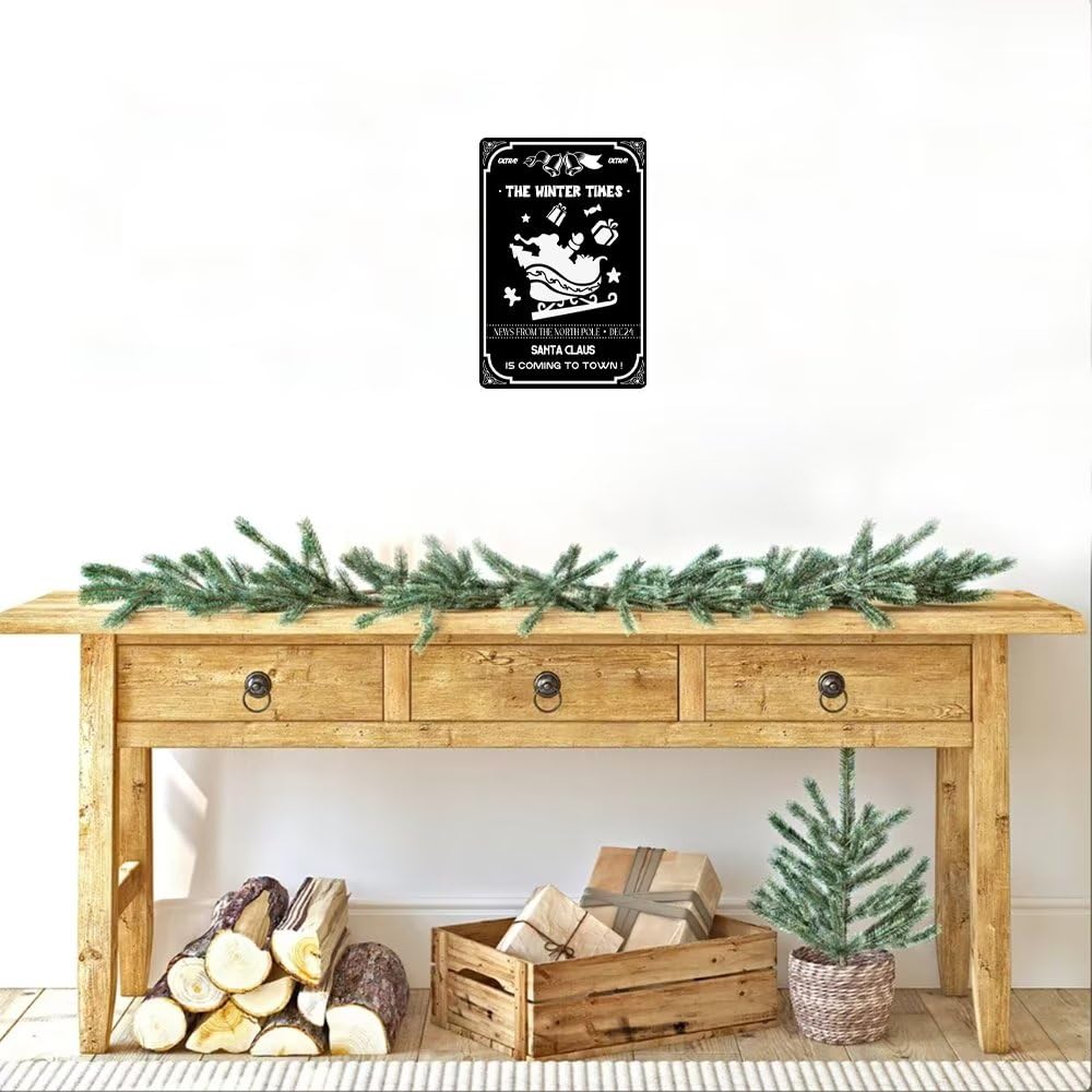 The Winter Times News From The North Pole Dec.24 Santa Claus Is Coming To Town Metal Tin Sign Retro Christmas Wall Decor for Hou