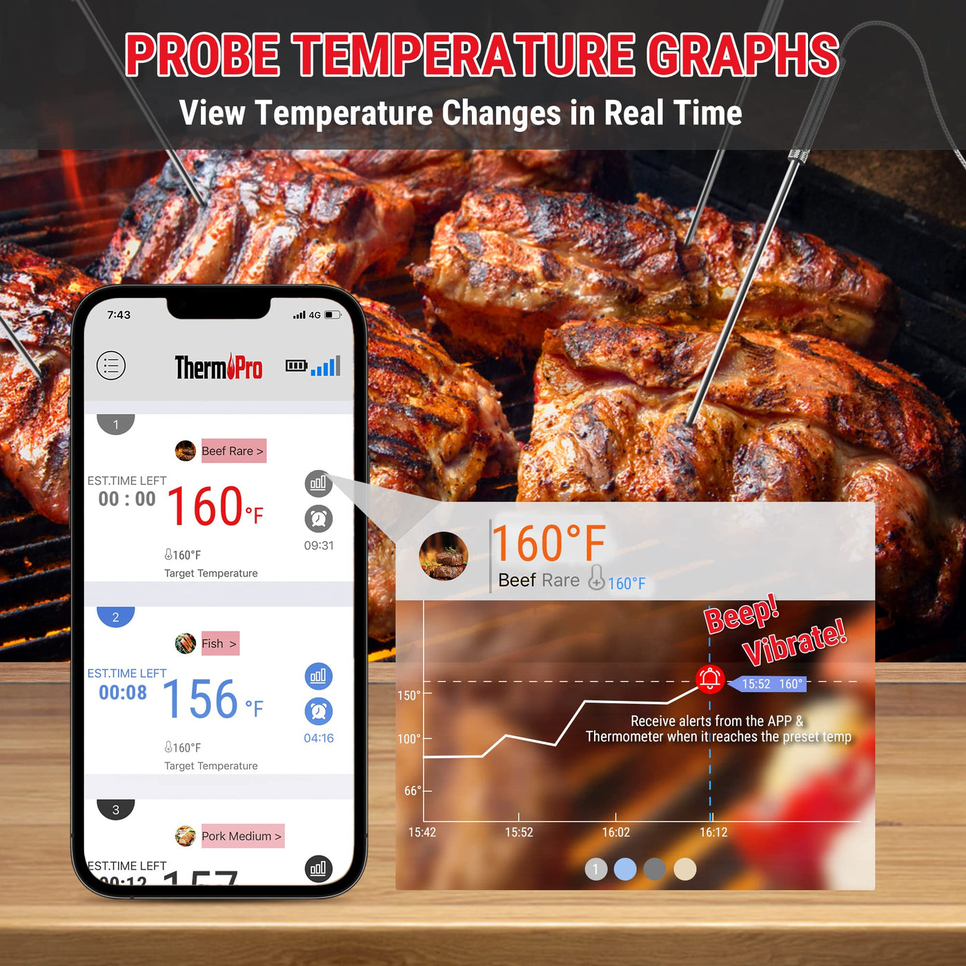 - Q: Can I receive alarms on my phone when cooking with the ThermoPro TP930? A: Yes, the ThermoPro TP930 features a pre-alarm system that notifies you on your phone when the cooking temperature approaches your target.