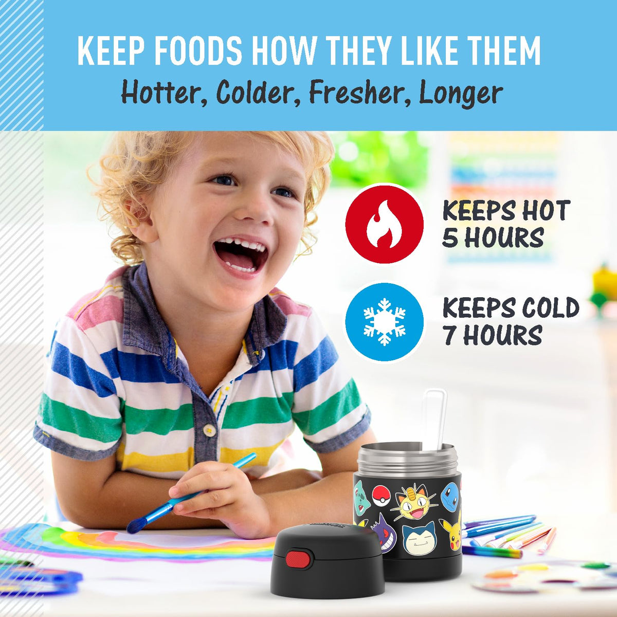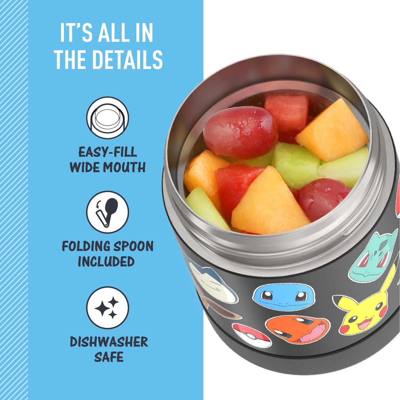 Thermos Funtainer 10 Ounce Stainless Steel Vacuum Insulated Kids Food Jar With Spoon, Pokemon