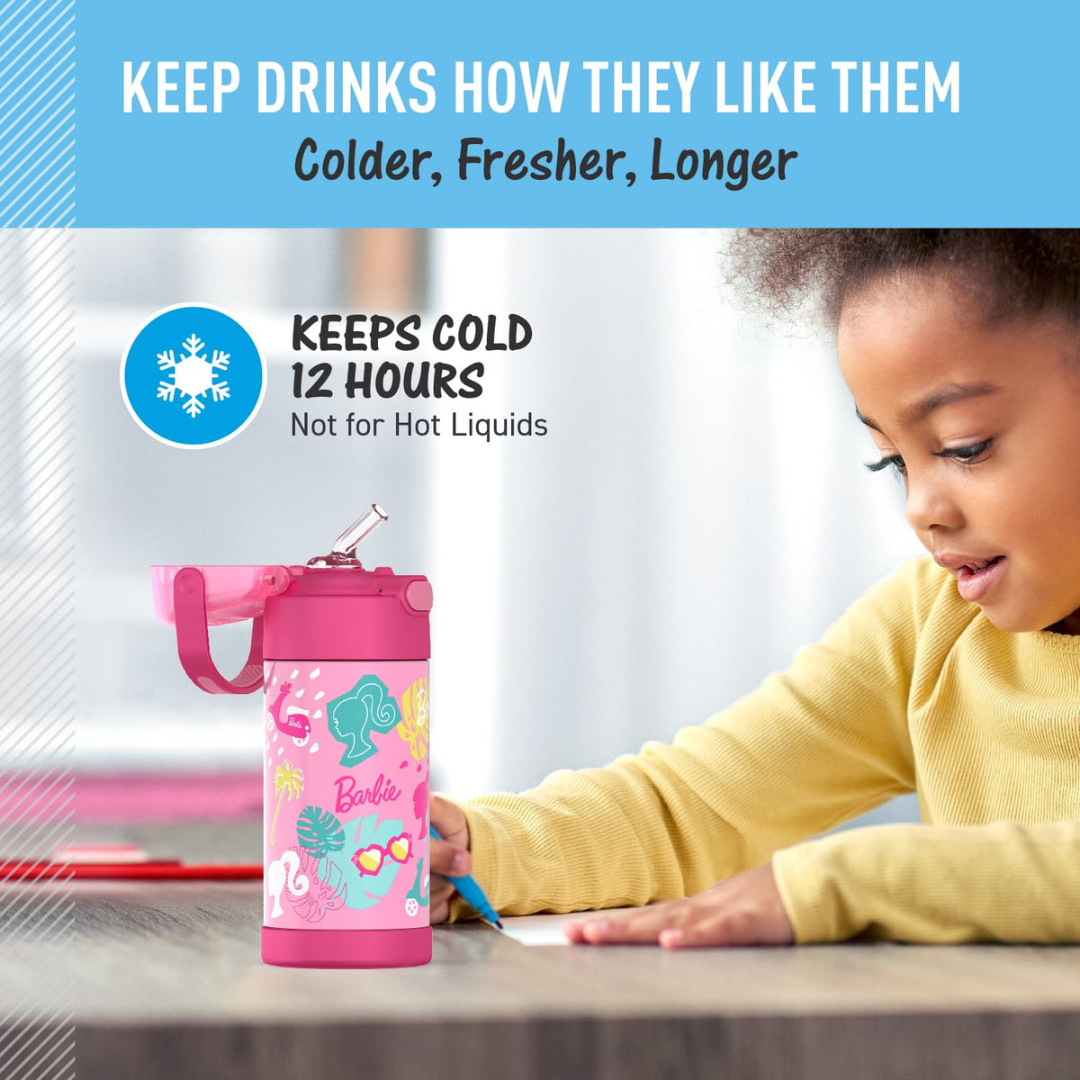 Thermos Funtainer Water Bottle With Straw - 12 Ounce, Barbie - Kids Stainless Steel Vacuum Insulated Water Bottle With Lid