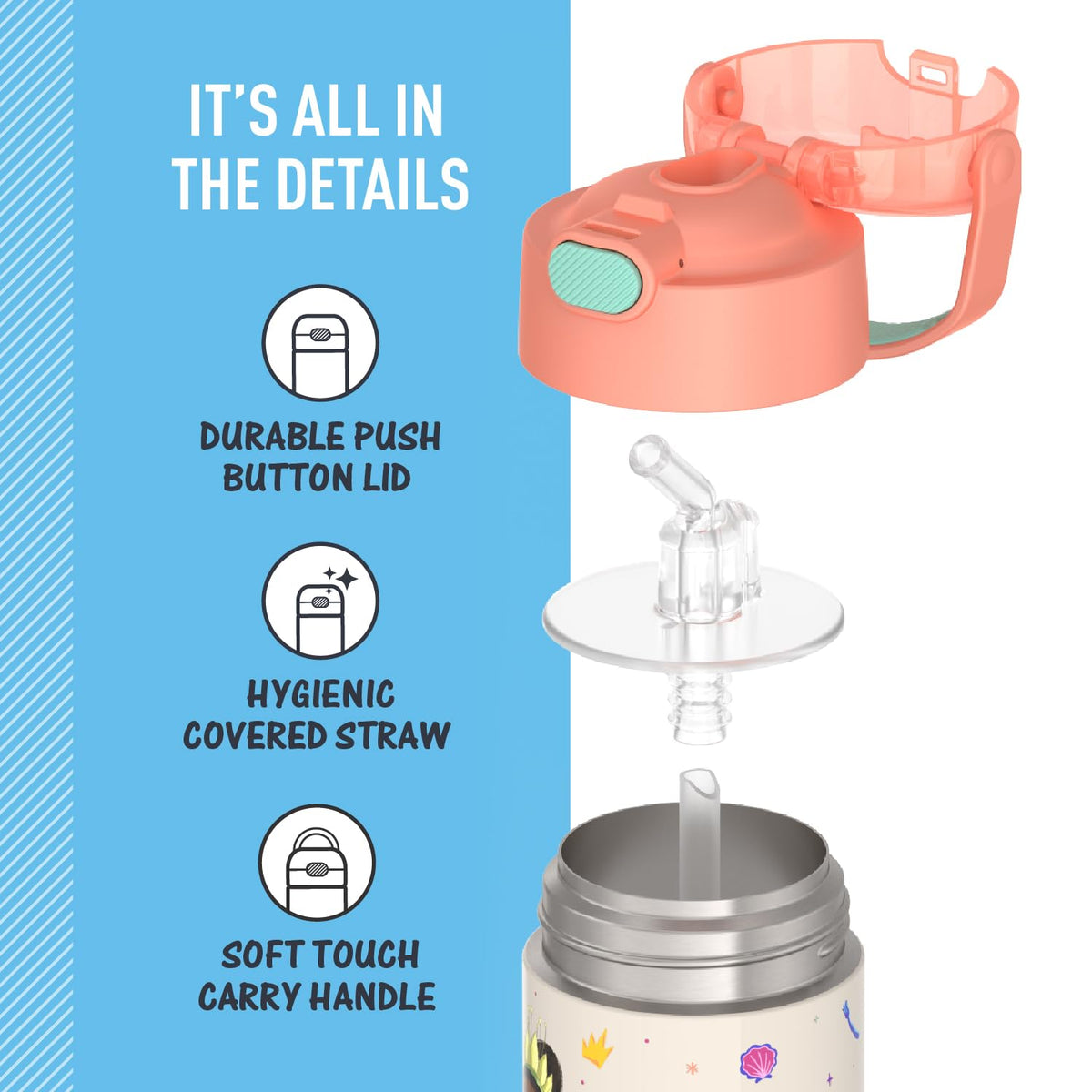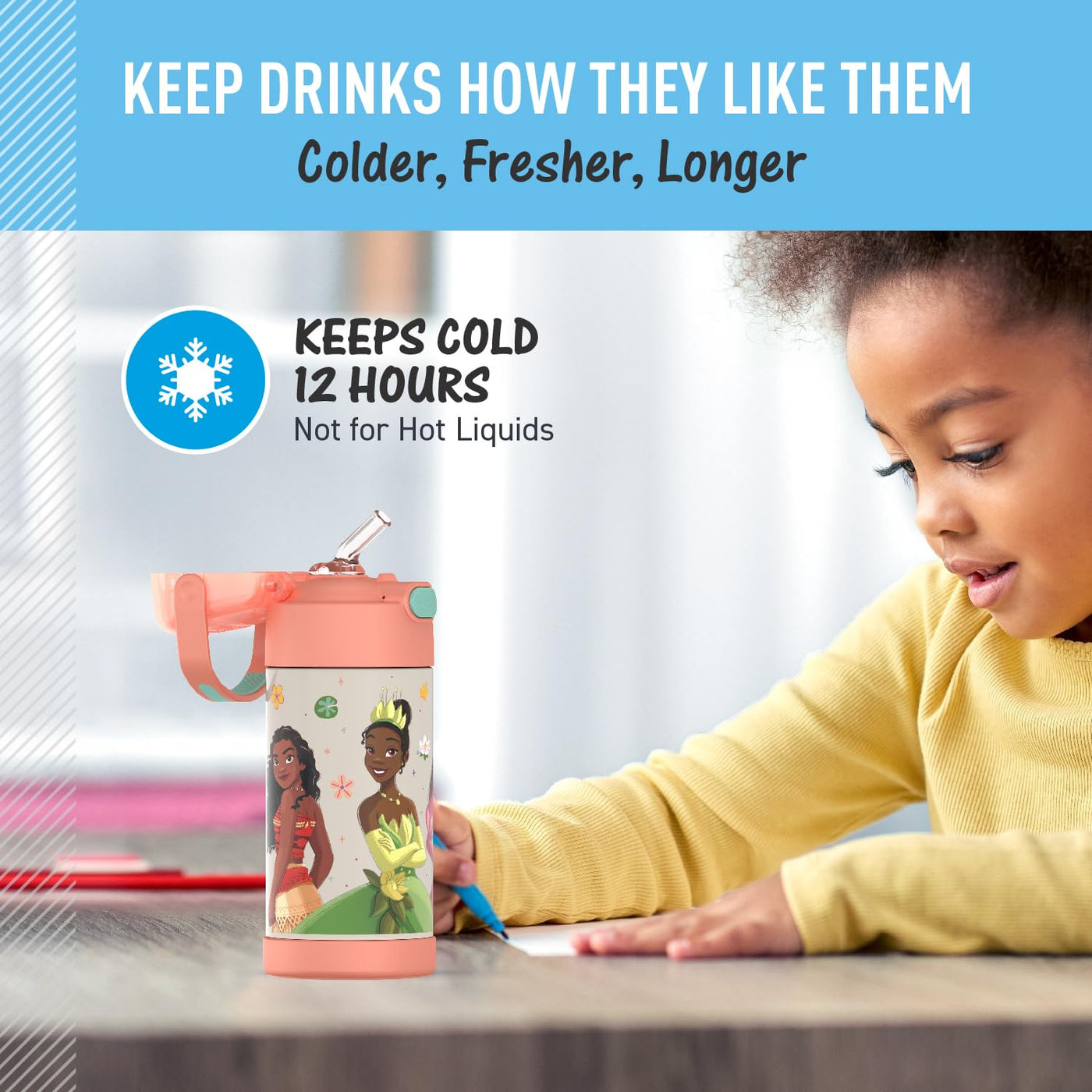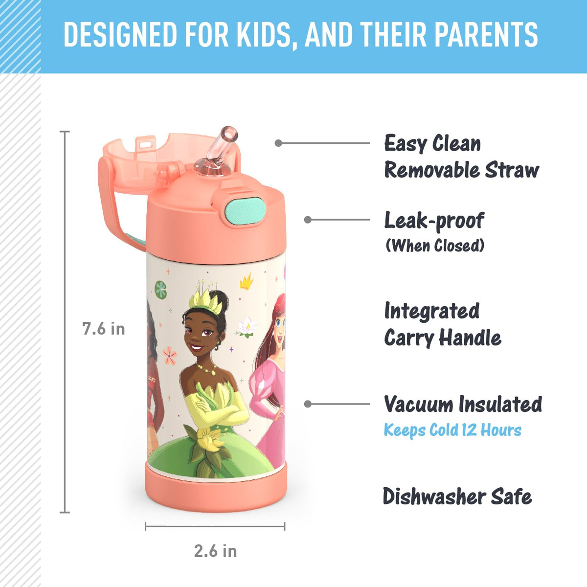 Thermos Funtainer Water Bottle With Straw - 12 Ounce, Princesses - Kids Stainless Steel Vacuum Insulated Water Bottle With Lid
