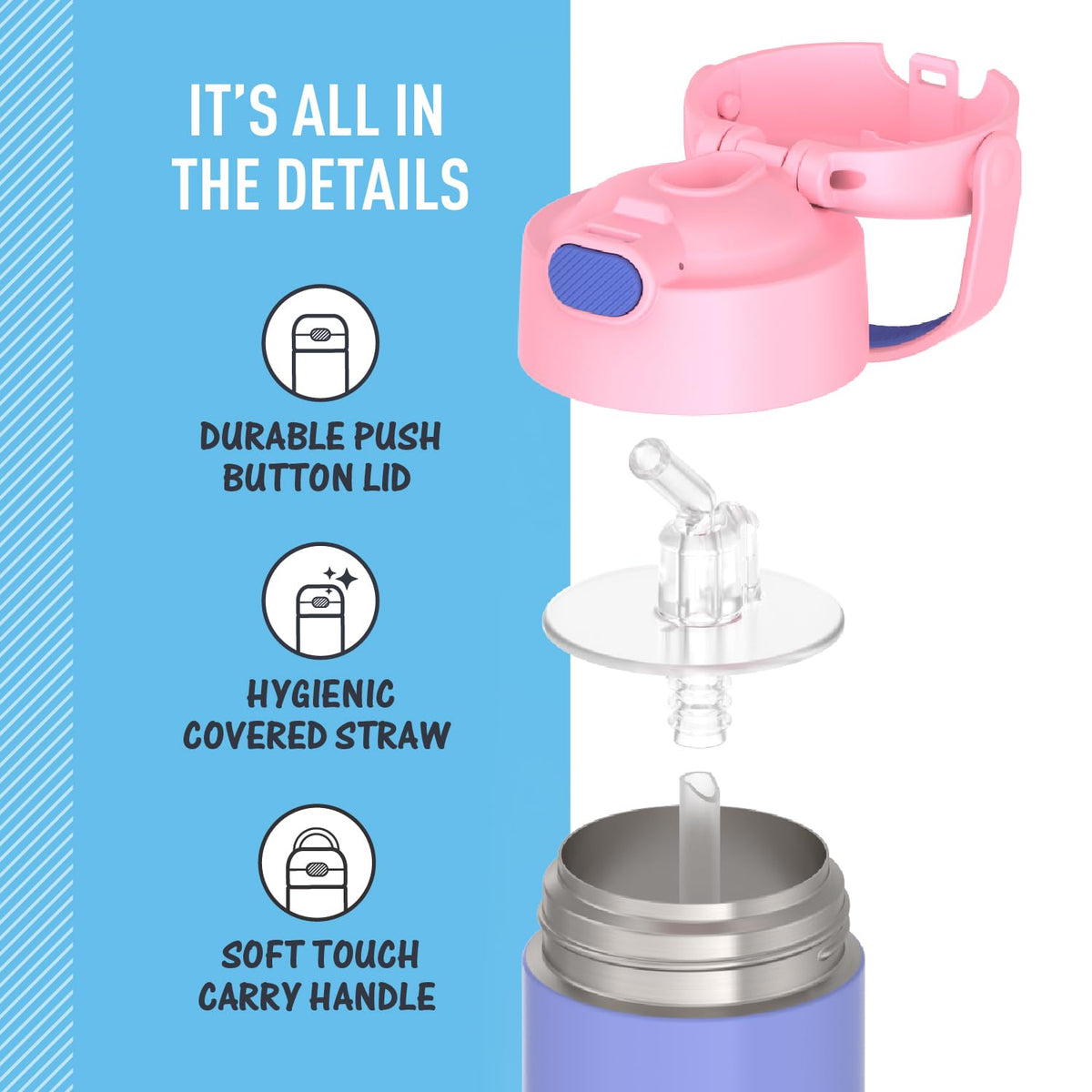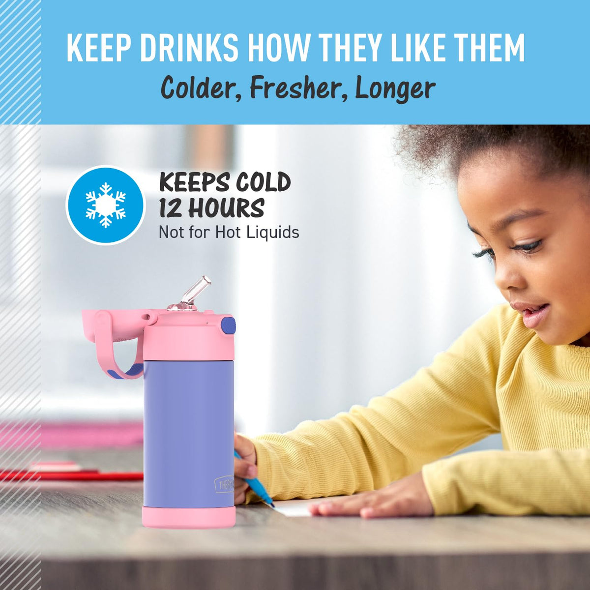 Thermos Funtainer Water Bottle With Straw - 12 Ounce, Purple/Pink - Kids Stainless Steel Vacuum Insulated Water Bottle With Lid