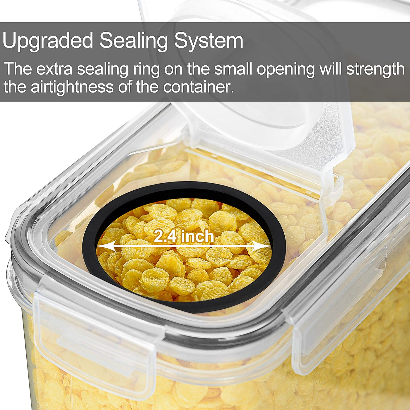 - Q: Are these cereal containers airtight? A: Yes, the containers feature a silicone gasket and a four side-locking system to ensure they are airtight, keeping your cereal fresh.