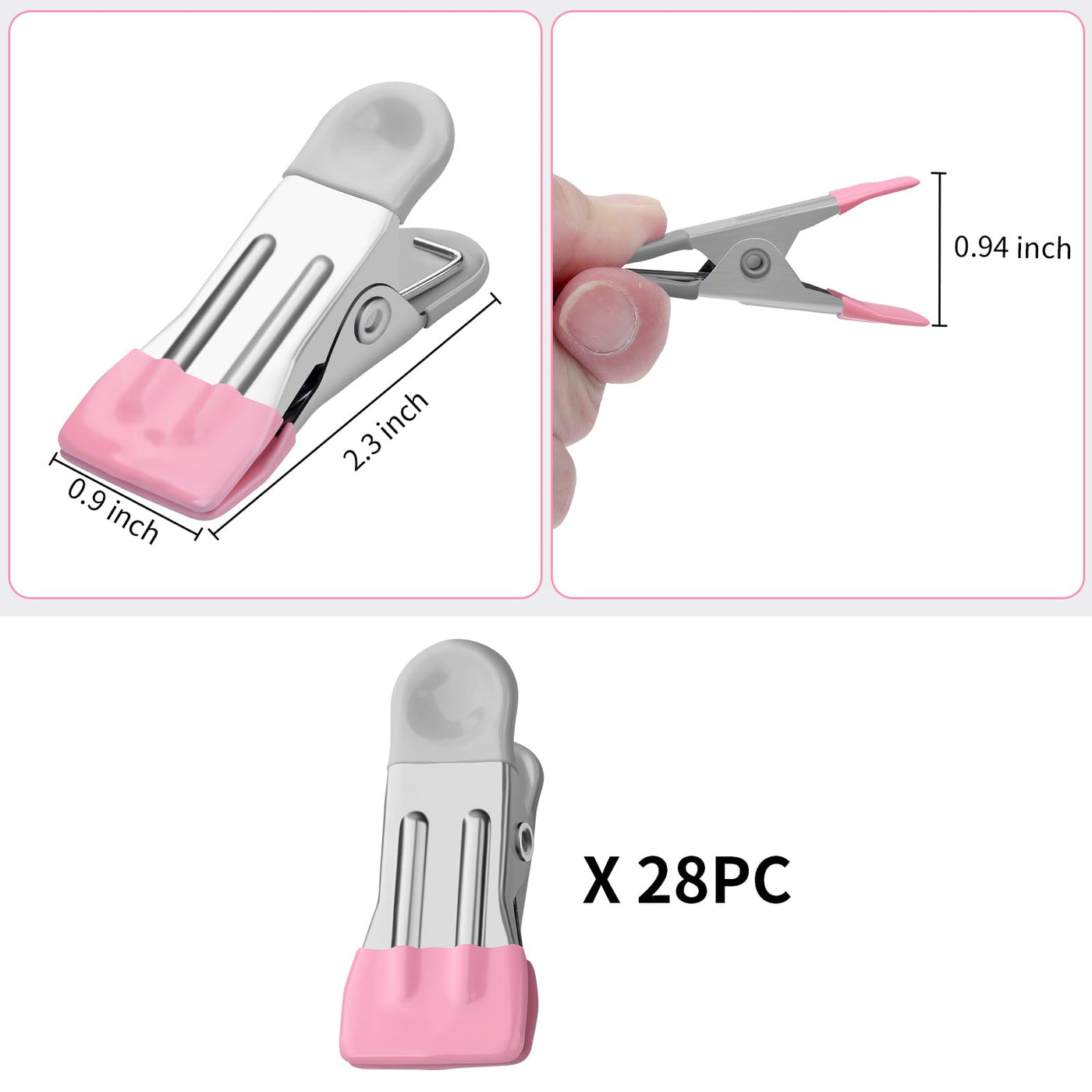 Tinfol 28Pc Clothes Pins, Stainless Steel Pink Laundry Clips - Multipurpose Strong Clothing Pins, Bag Clips, Chip Clips, Food Cl