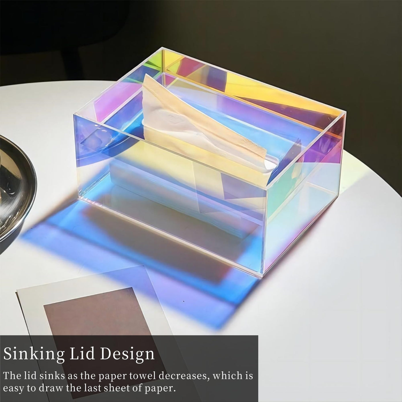 - Q: What color is the Tissue Box Cover? A: The Tissue Box Cover is transparent and photorefractive, providing a dazzling appearance.