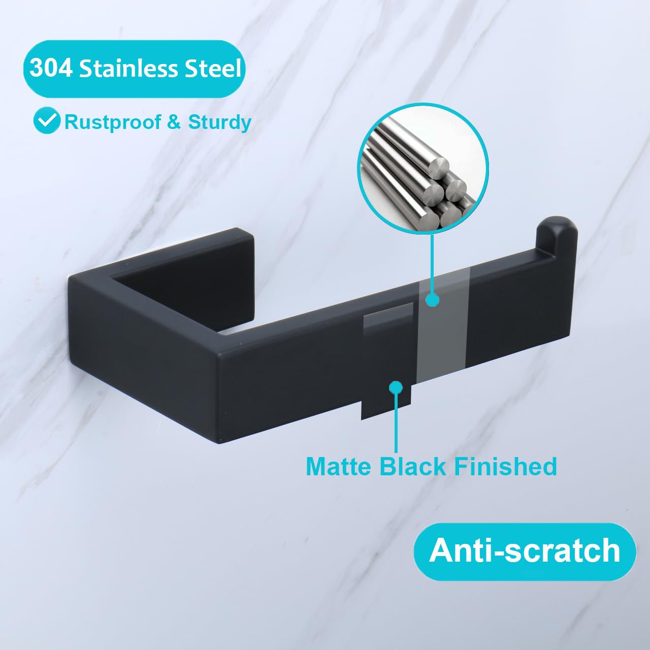 • Q: What is the finish of the toilet paper holder? A: The TocTen Toilet Paper Holder features a sleek black finish, adding a modern touch to your bathroom or kitchen decor.