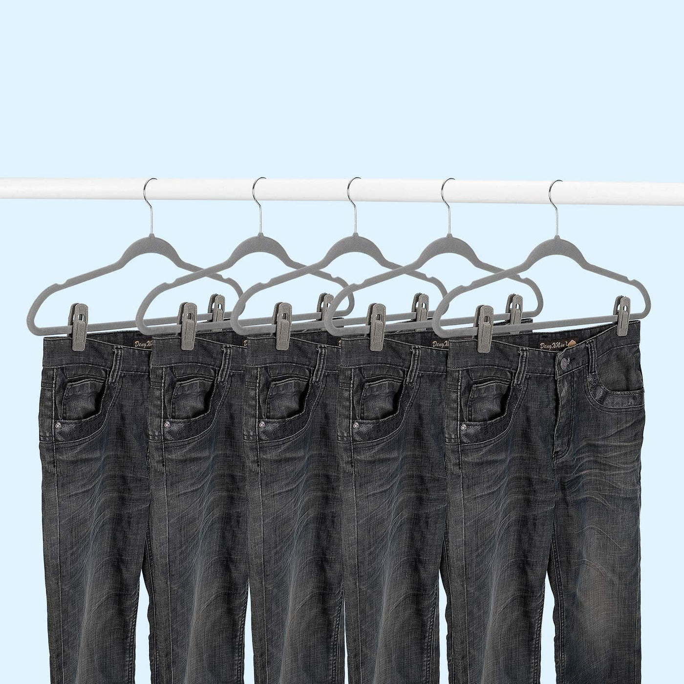 Tofiigrem Grey Velvet Clips For Velvet Hangers - 20 Pcs Gray Non Slip Velvet Hanger Clip, Pants Hanger Velvet Clips Fit For Slim