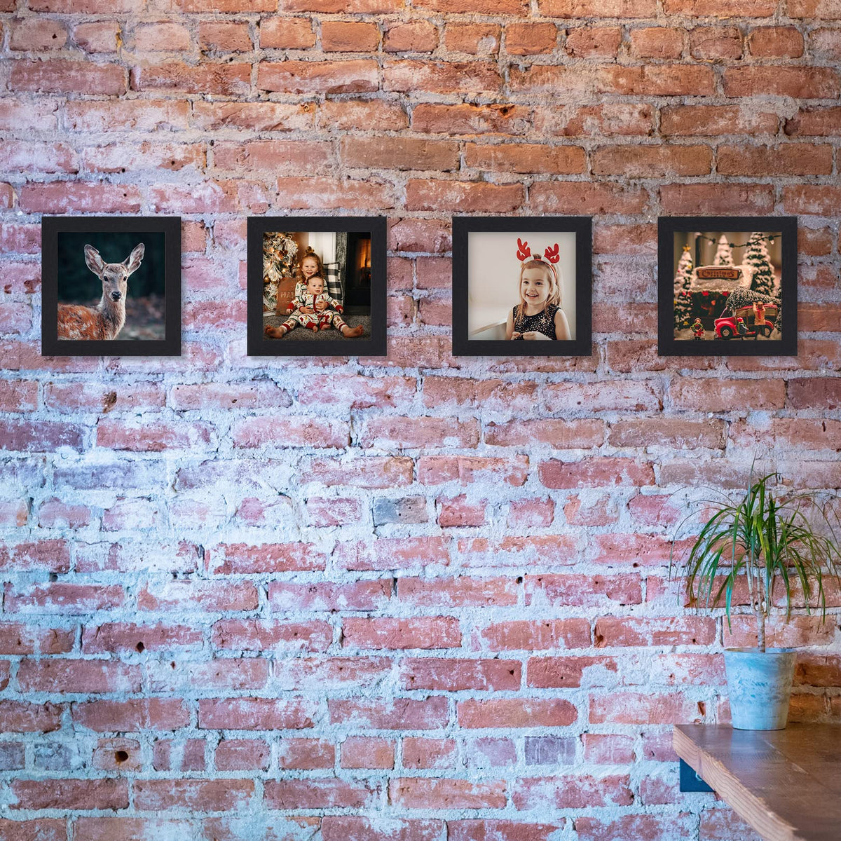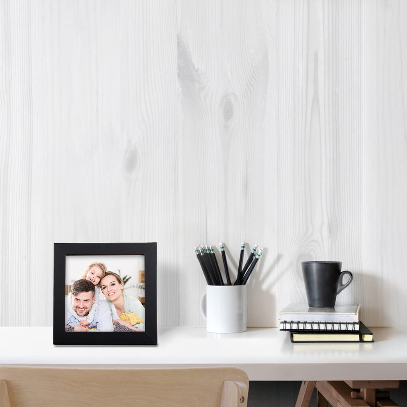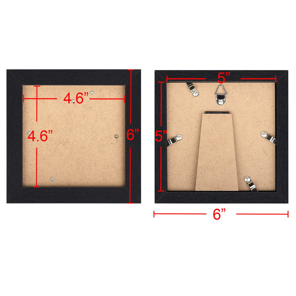 5x5 Picture Frame: 6 Pack Black Wood Grain Square 5x5 Picture Frames, finished with a rustic style accents. Giving you the distressed look. Its great for wall or farmhouse decor. | Material: Made of sturdy mdf wood, not easy to deform, no smell. And come with high definition organic glass(polymethyl methacrylate ), Shatterproof, Durability and Not fragile. | Use and Display: Backing fixed with 4 metal tabs. Easy to put photos in. Stands up well and not wobbly. Wall mountable display horizontally or vertically. Nice decor. on the shelf or blank wall. | Perfect Design: Great for displaying photos that something means so much, and can look at everyday! Also a excllent gifting to somebody. Well to decorate room with. | Protective Packing : Well packaging that helps ensure safe delivery. For personal use or as a gift to friends.