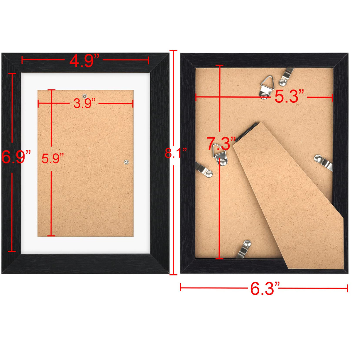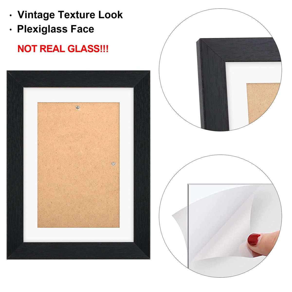 5x7 Picture Frame: 6 Pack Black Wood Grain 5x7 Picture Frames, finished with a rustic style accents. Giving you the distressed look. Its great for wall or farmhouse decor. | Material: Made of sturdy mdf wood, not easy to deform, no smell. And come with high definition organic glass(polymethyl methacrylate ), Shatterproof, Durability and Not fragile. | Use and Display: Backing fixed with 4 metal tabs. Easy to put photos in. Stands up well and not wobbly. Wall mountable display horizontally or vertically. Nice decor. on the shelf or blank wall. | Perfect Design: Great for displaying photos that something means so much, and can look at everyday! Also a excllent gifting to somebody. Well to decorate room with. | Protective Packing : Well packaging that helps ensure safe delivery. For personal use or as a gift to friends.