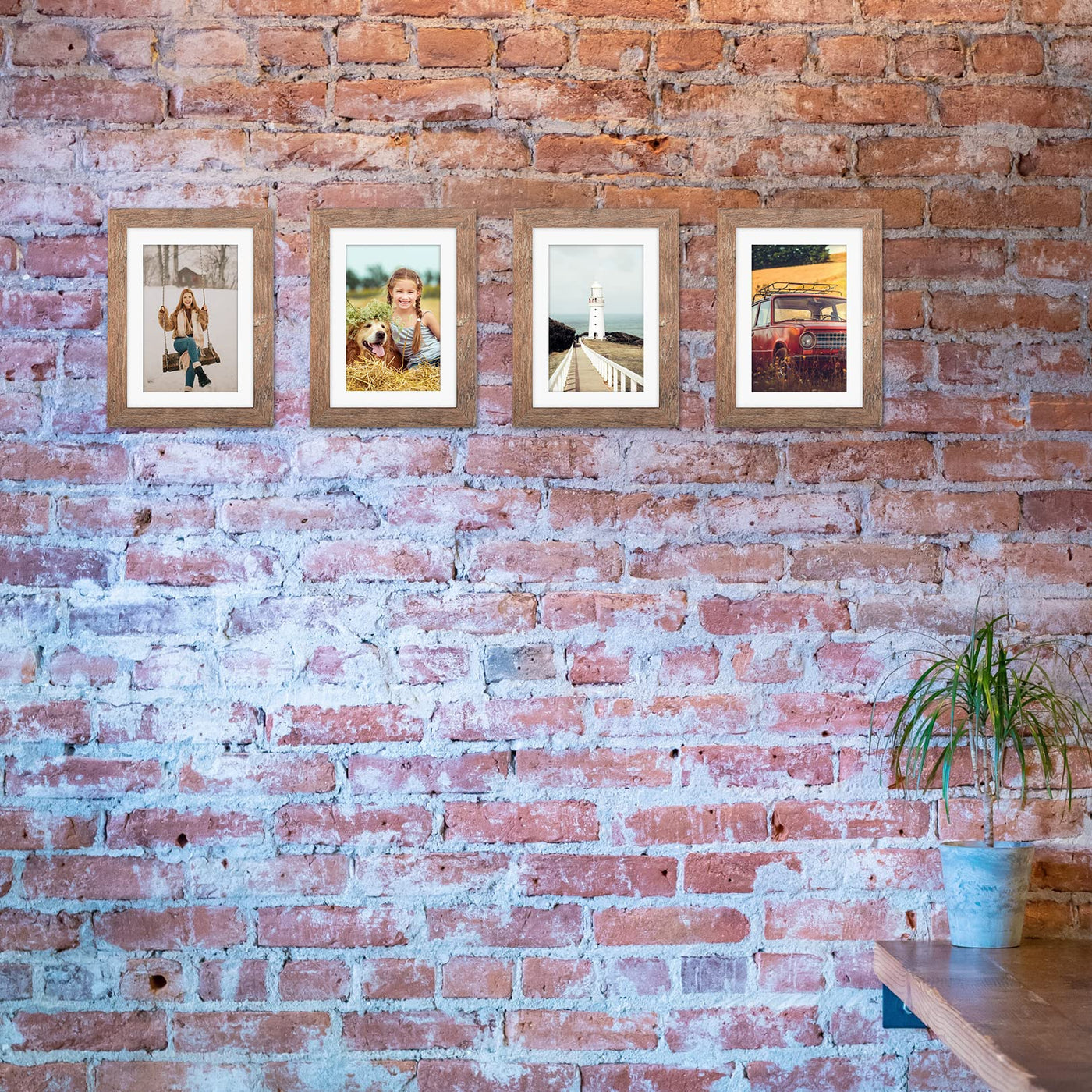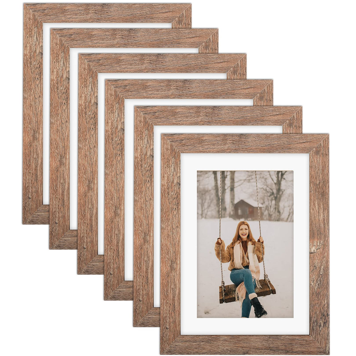 5x7 Picture Frame: 6 Pack Rustic Wood Grain 5x7 Picture Frames, finished with a rustic style accents. Giving you the distressed look. Its great for wall or farmhouse decor. | Material: Made of sturdy mdf wood, not easy to deform, no smell. And come with high definition organic glass(polymethyl methacrylate ), Shatterproof, Durability and Not fragile. | Use and Display: Backing fixed with 4 metal tabs. Easy to put photos in. Stands up well and not wobbly. Wall mountable display horizontally or vertically. Nice decor. on the shelf or blank wall. | Perfect Design: Great for displaying photos that something means so much, and can look at everyday! Also a excllent gifting to somebody. Well to decorate room with. | Protective Packing : Well packaging that helps ensure safe delivery. For personal use or as a gift to friends.