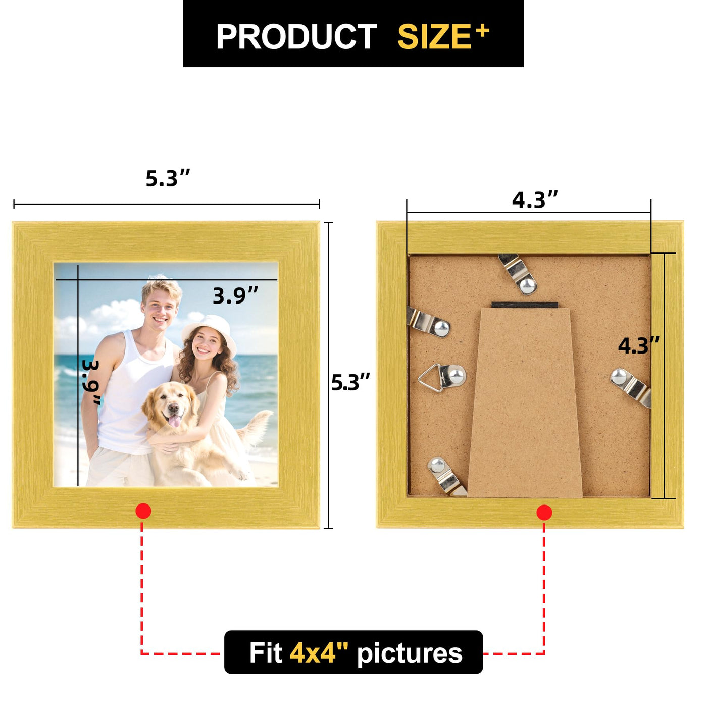 TOFOREVO Picture Frames 4x4 Set of 2 Distressed Gold Wood Grain Photo Frame for Gallery Wall Mounting or Tabletop Display