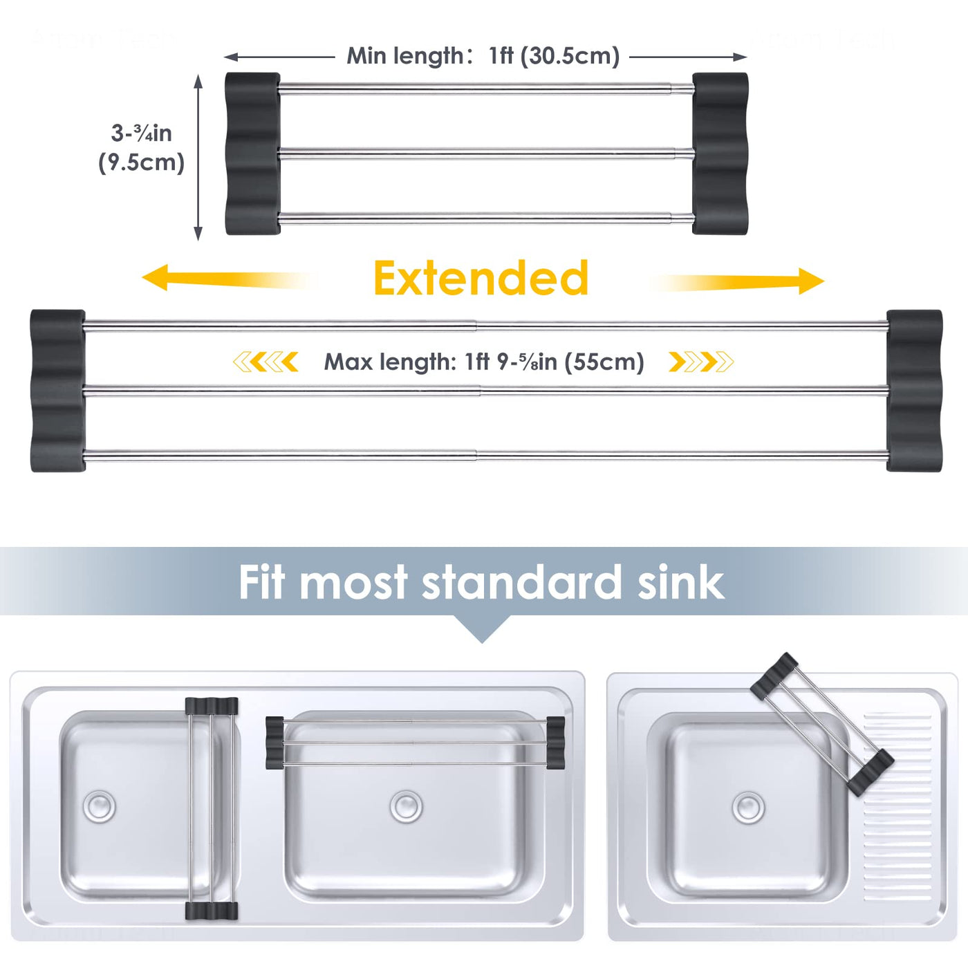 Tomorotec Adjustable Over-The-Sink Kitchen Rack For Dishcloths, Sponges, Bottles And Brushes - Heat-Resistant Stainless Steel Wi