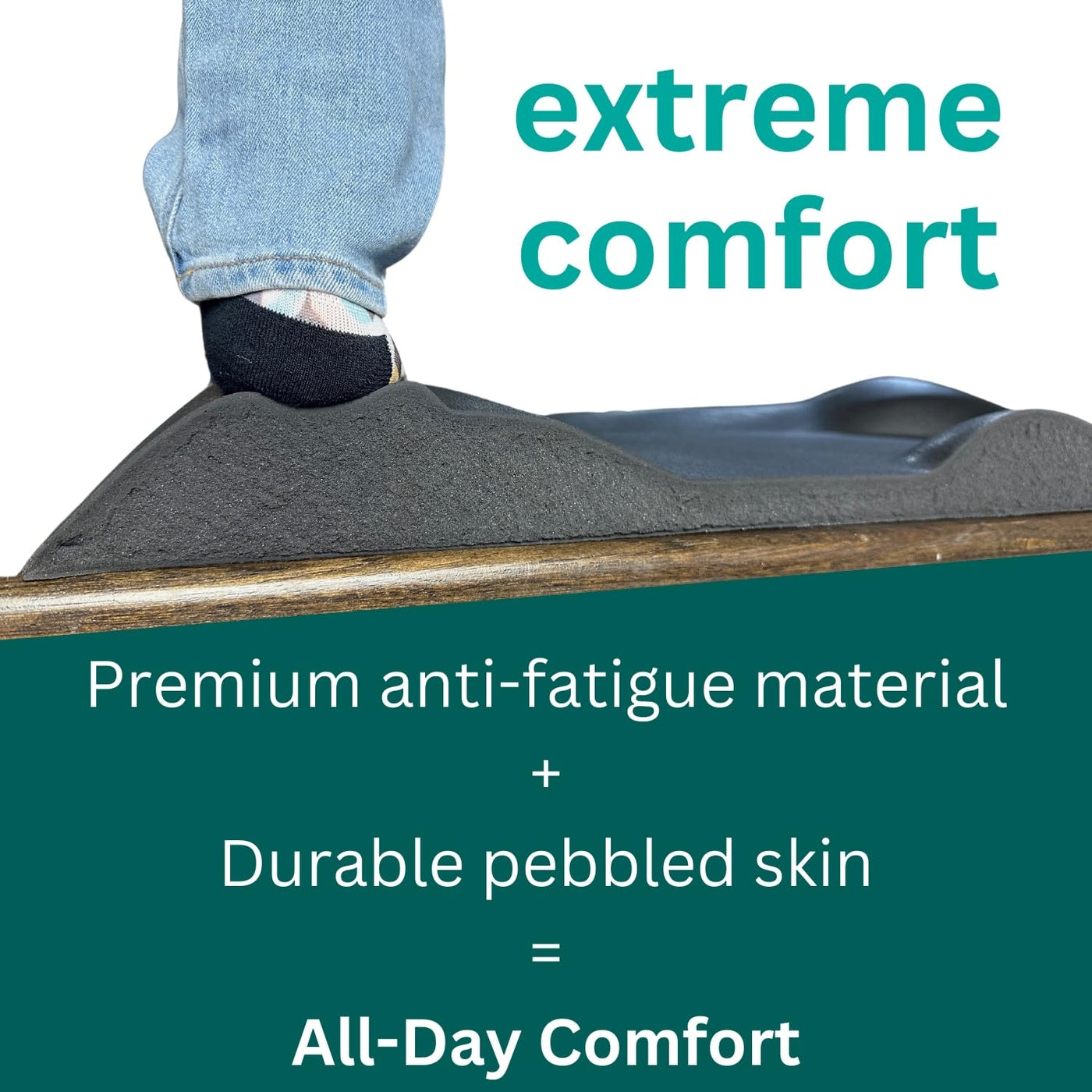 - Q: How do I reposition the Topo Comfort Mat? A: Repositioning the Topo Comfort Mat is simple. You can use your foot to lift and slide it under or out from your desk easily, thanks to its unique indentation design.