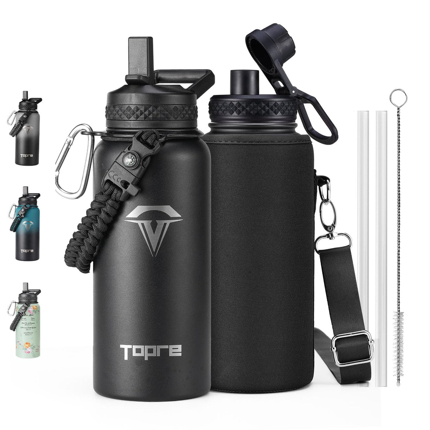 Topre 32oz Insulated Water Bottle,Stainless Steel Vacuum Water Bottle, BPA-Free & Leakproof -with Paracord Handle,Strap,Straw Sp