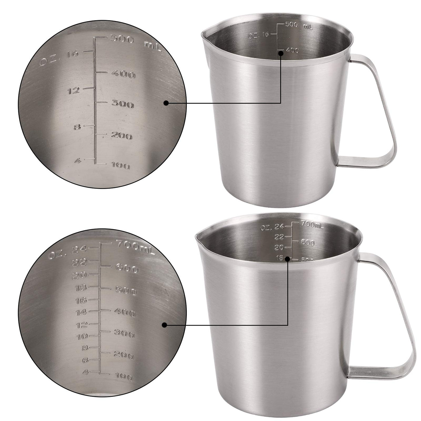 Topzea Set Of 2 Measuring Cup With Handle, 18/8 Stainless Steel Baking Measuring Pitcher 16 Oz & 24 Oz Coffee Milk Frothing Cup