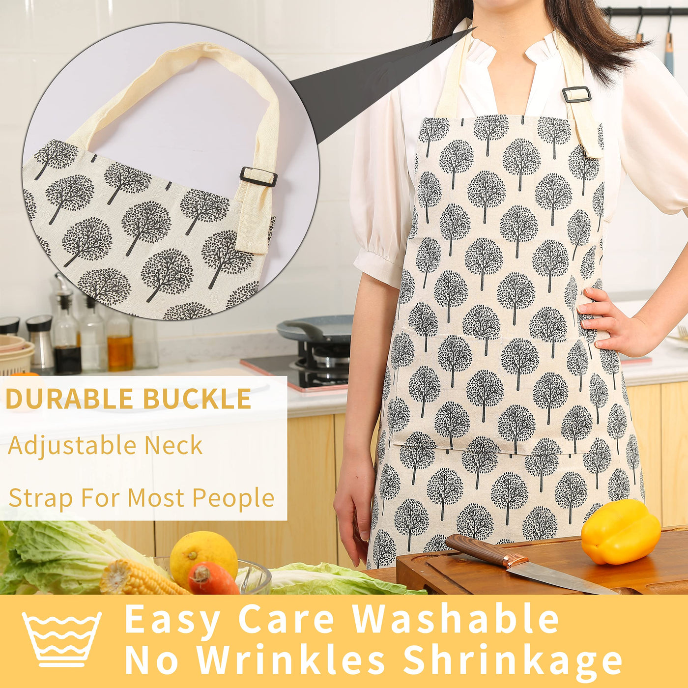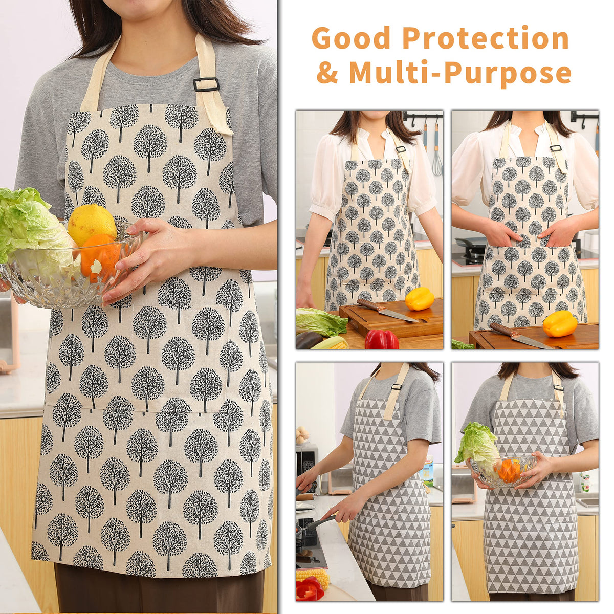 Tosewever 2 Pieces Cotton Linen Waterproof Bib Apron With 2 Pockets - Long Ties Adjustable Neck Strap - Unisex Cooking Kitchen D