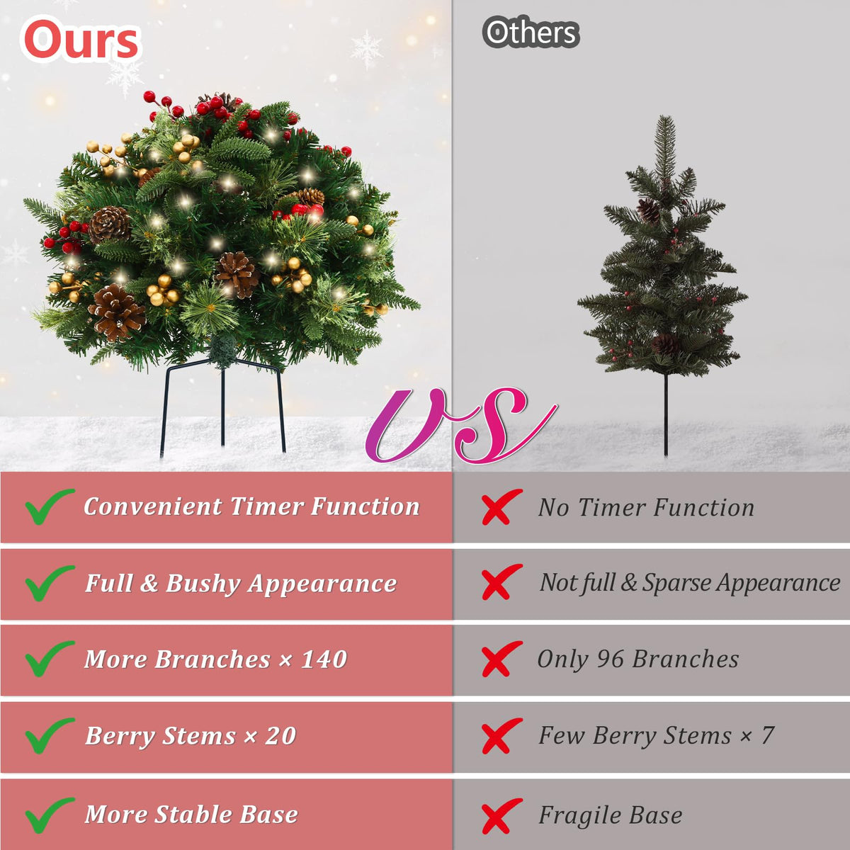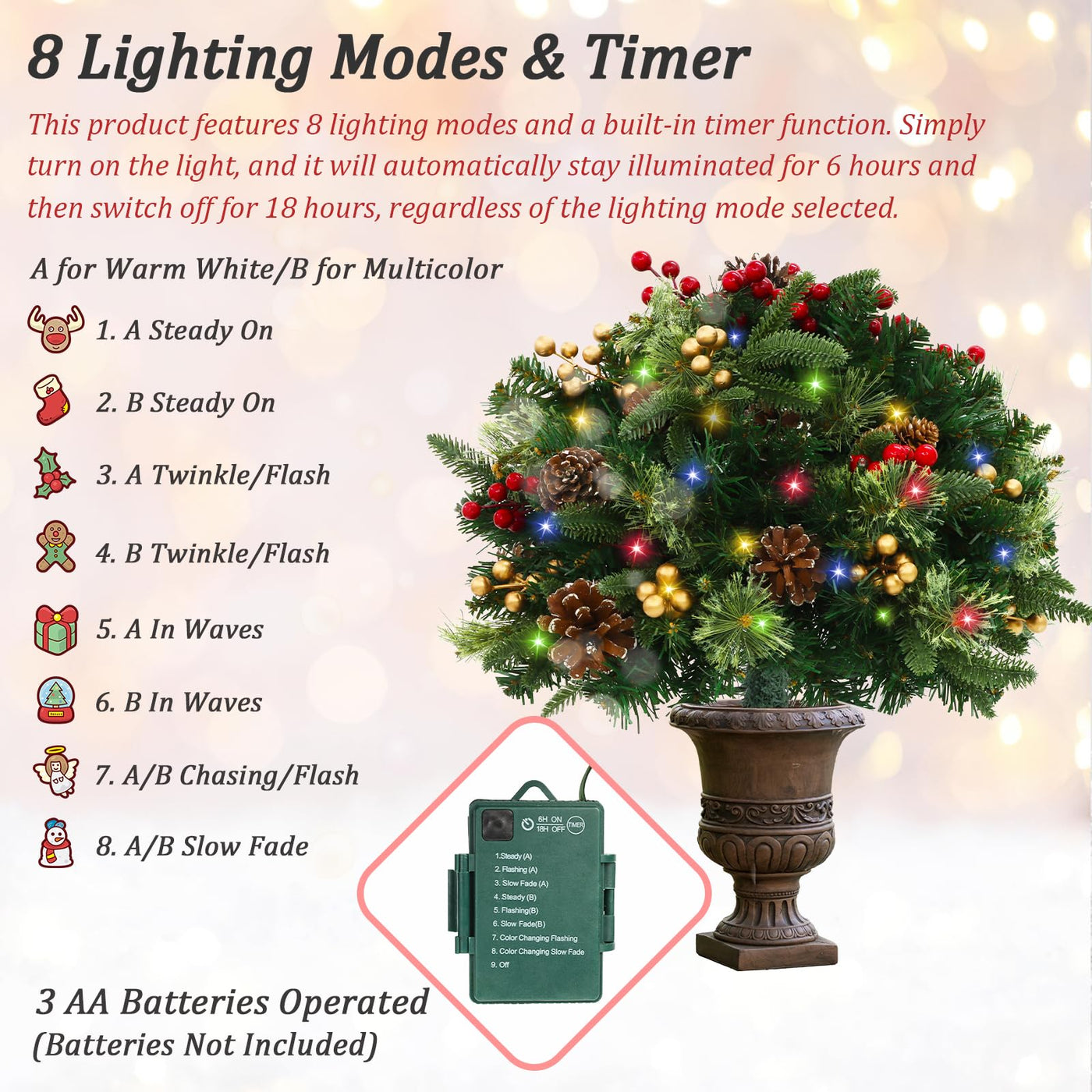 TOWPONICS Set of 2 Outdoor Pathway Christmas Trees, 18in Pre-Lit Realistic Xmas Tree Urn & Planter Filler for Porch, Yard, Drive