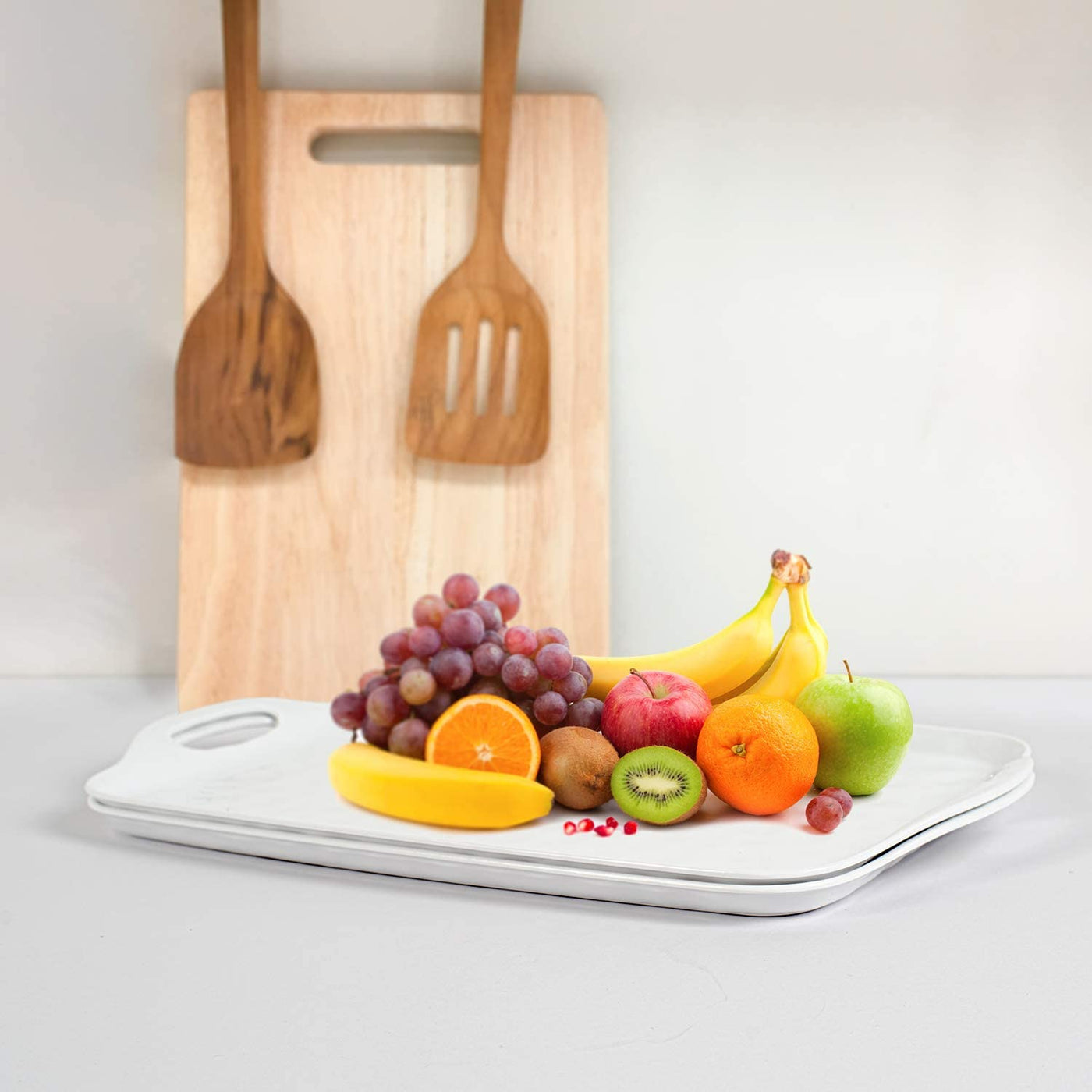 Tp Serving Tray With Handles, 17 '' Inch Large Rectangle Melamine Serving Platter Set Of 2, Pure White