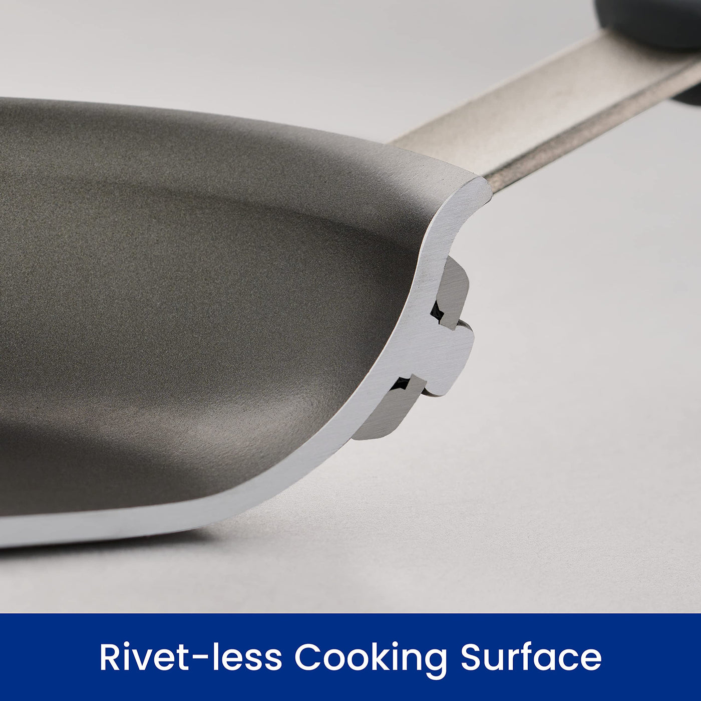 • Q: What kind of nonstick coating does the frying pan have? A: The frying pan features a reinforced nonstick coating with a rivet-less Fusion cooking surface for effortless food release.