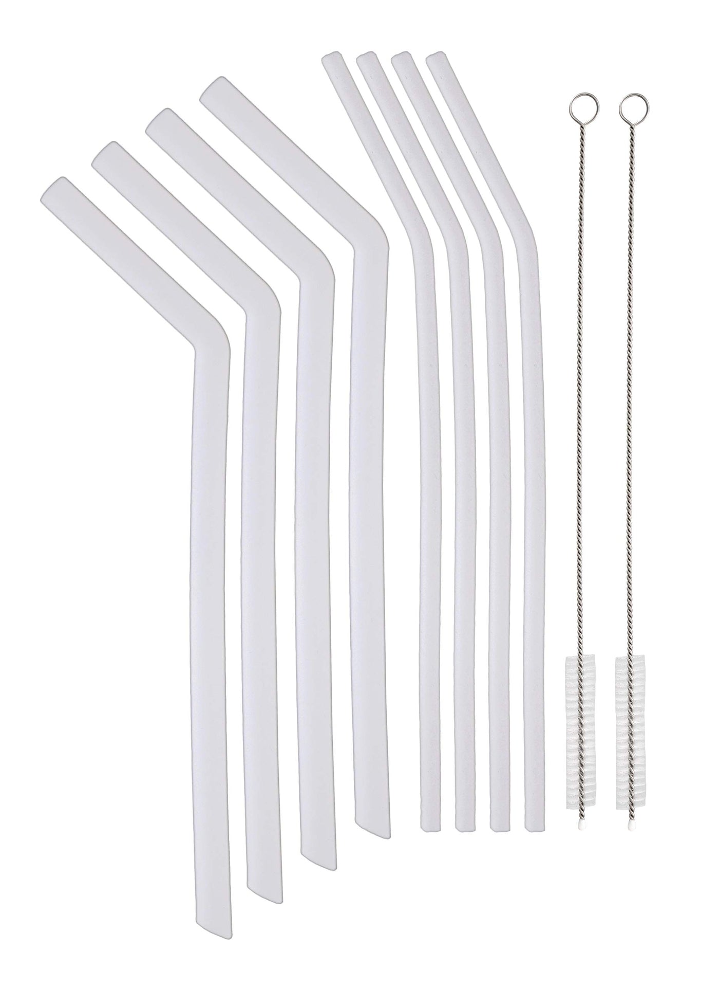Traytastic! Clear Silicone Straws - 8 Pack (4) Jumbo & (4) Standard Sized Drinking Straws + (2) Cleaning Brushes Flexible Reusable Eco-Friendly
