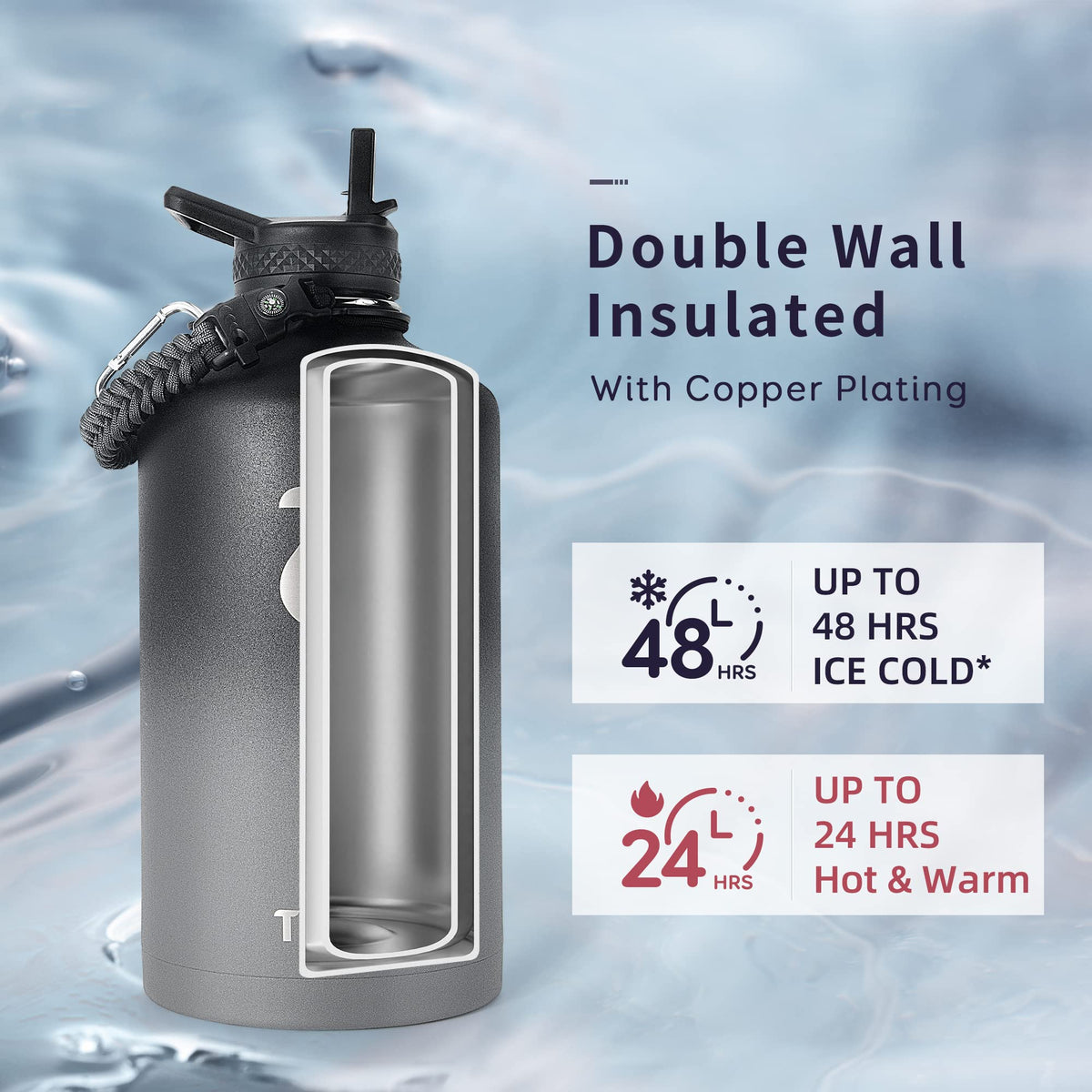 Trebo One Gallon Water Bottle Insulated With Paracord Handle,128Oz Stainless Steel Sports Large Jug Food-Grade Double Wall Vacuu