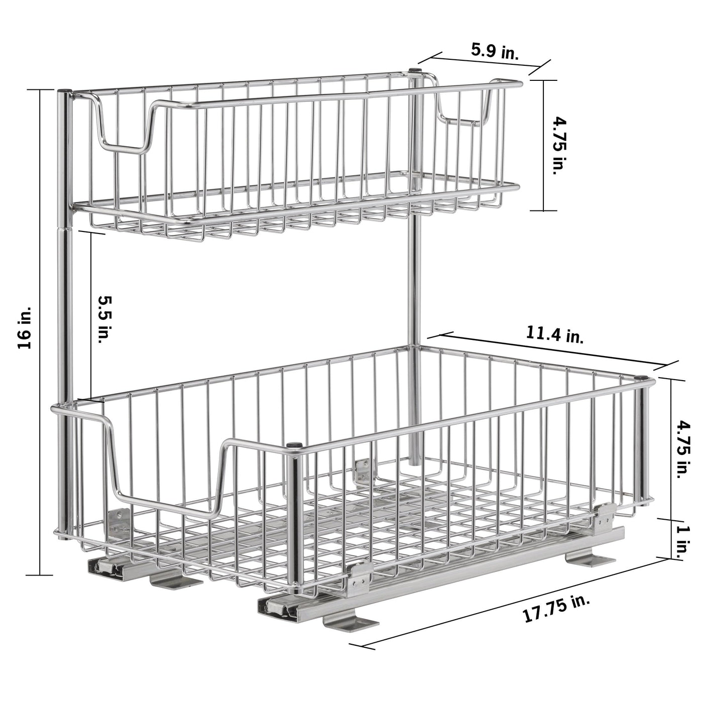 Trinity Sliding Undersink 2 Baskets For Kitchen And Bathroom Cabinet Organization And Storage, 50 Pound Capacity, 11.5 W X 17