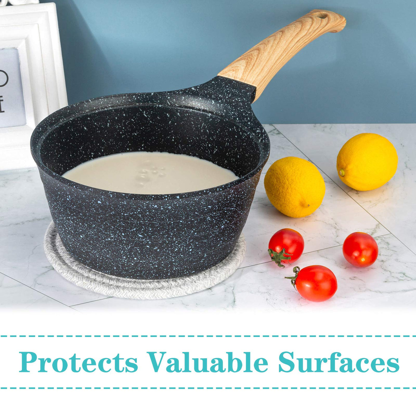 - Q: Are these trivets safe for use with food? A: Yes, the natural cotton material is safe for use with food and does not emit any harmful odors.
